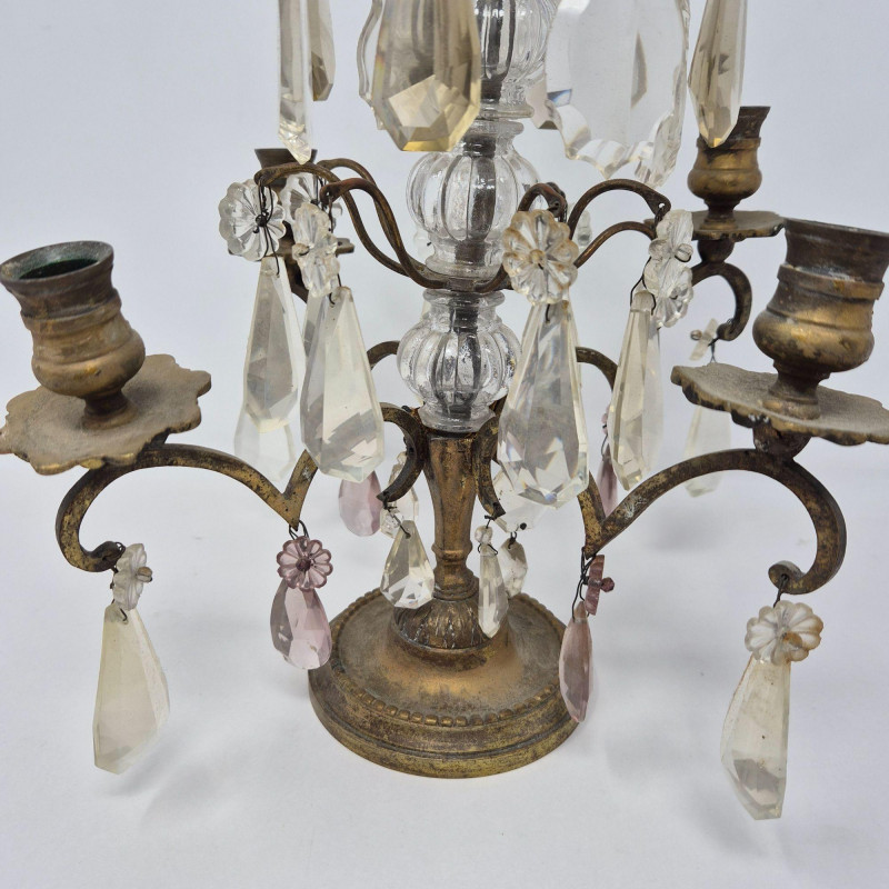 Lot # 83 - Art Nouveau Brass & Crystal Candelabra (#2)