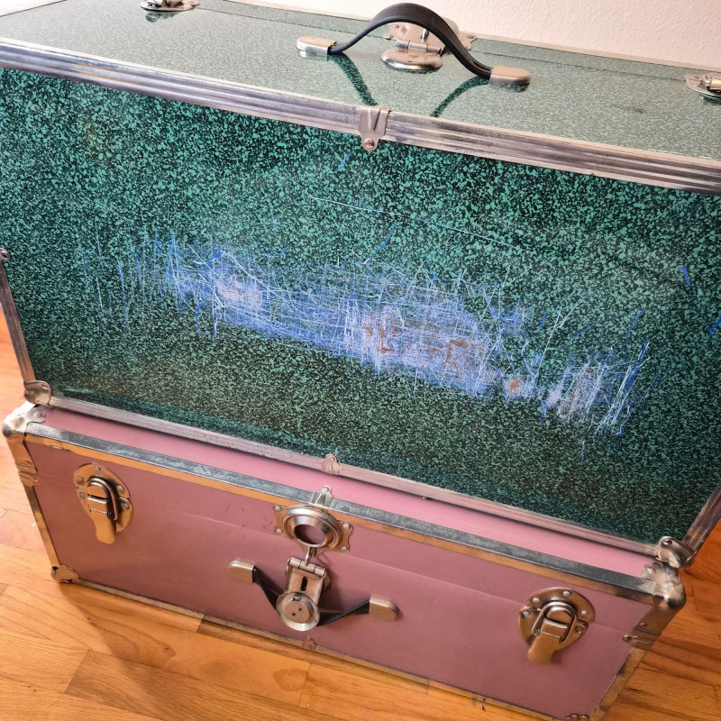 Lot # 85 - Rustic Storage Trunk Duo - Green & Pink
