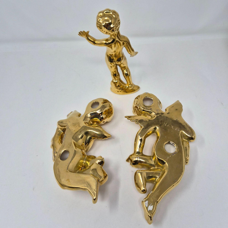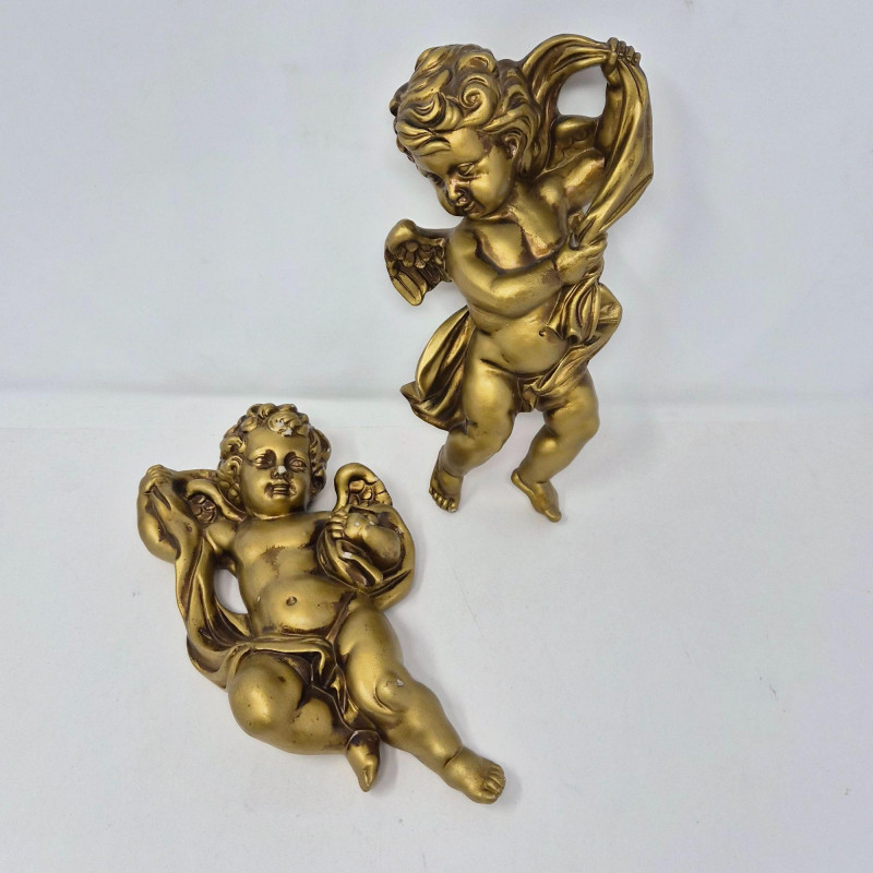 Lot # 123 - Vintage Ceramic & Plaster Cherubs in Gold Finish