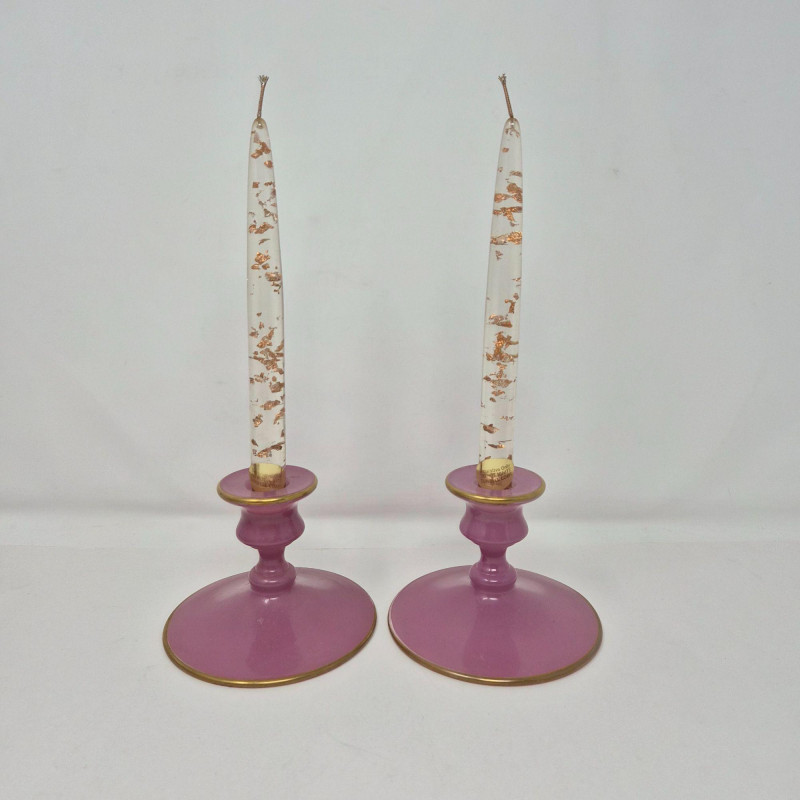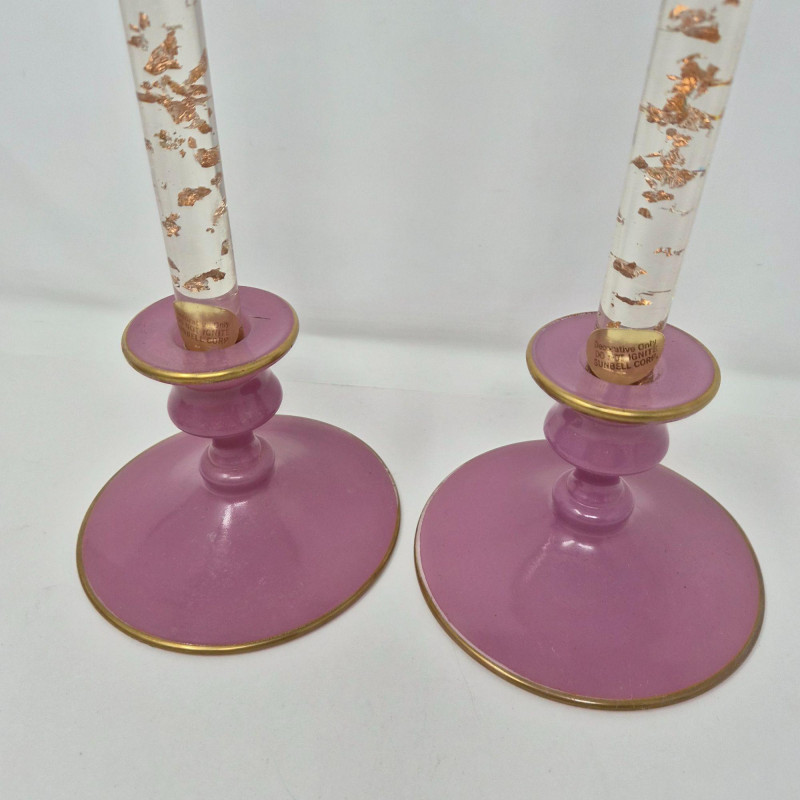 Lot # 88 - Purple Glass Decor & Vintage Gold Flake Candles