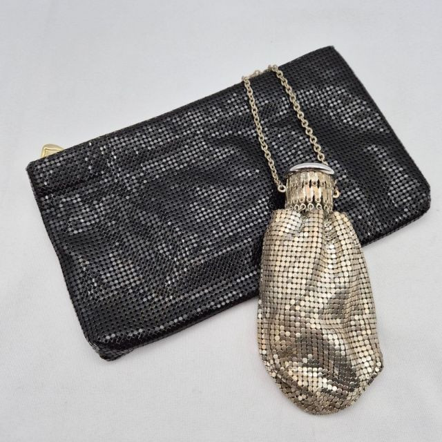Lot # 96 - Whiting & Davis Mesh Duo -Silvertone Pouch & Black Zip Clutch