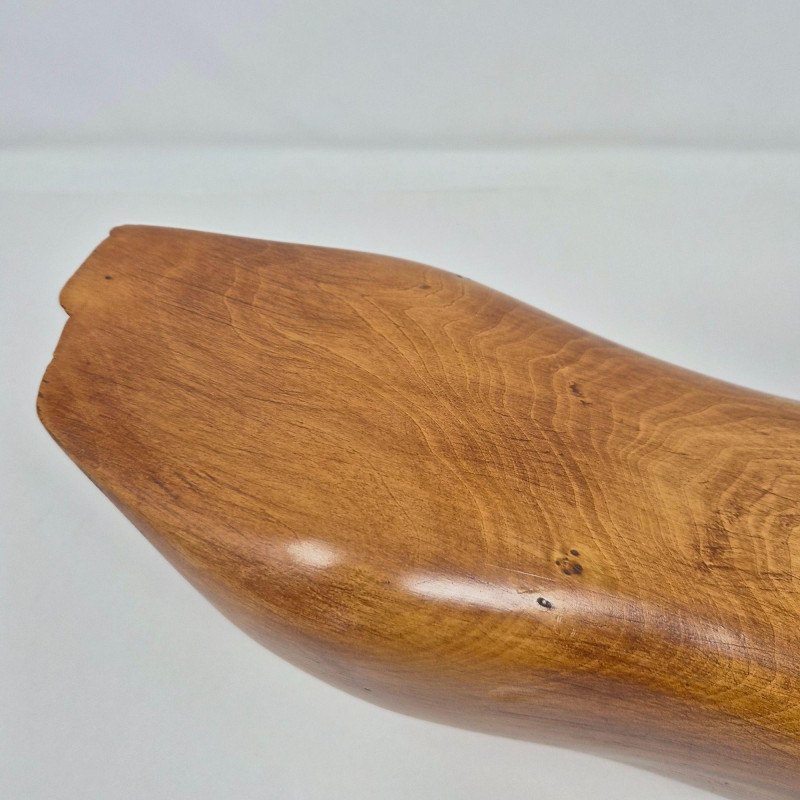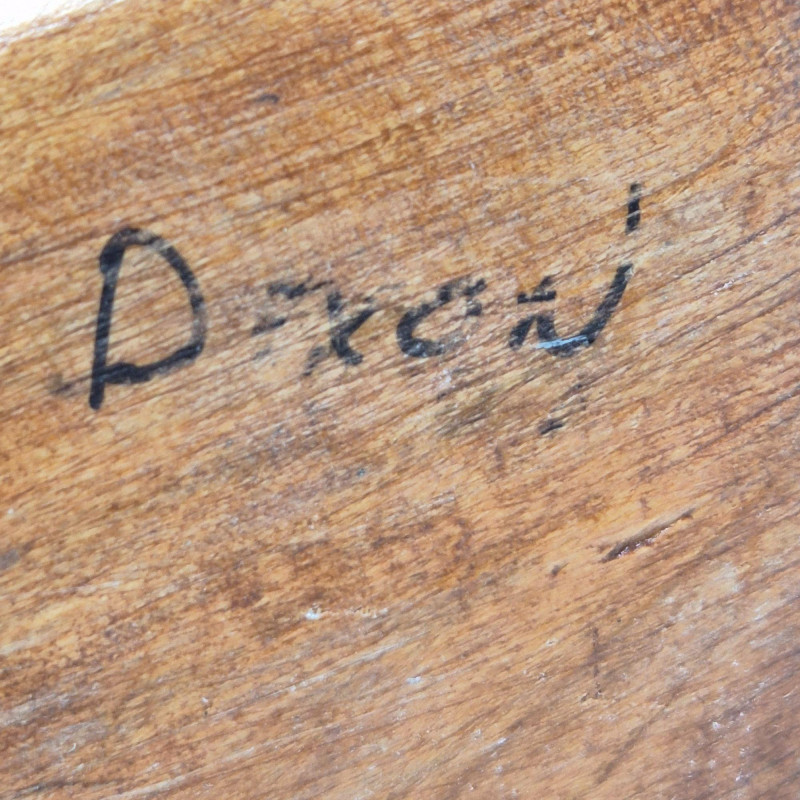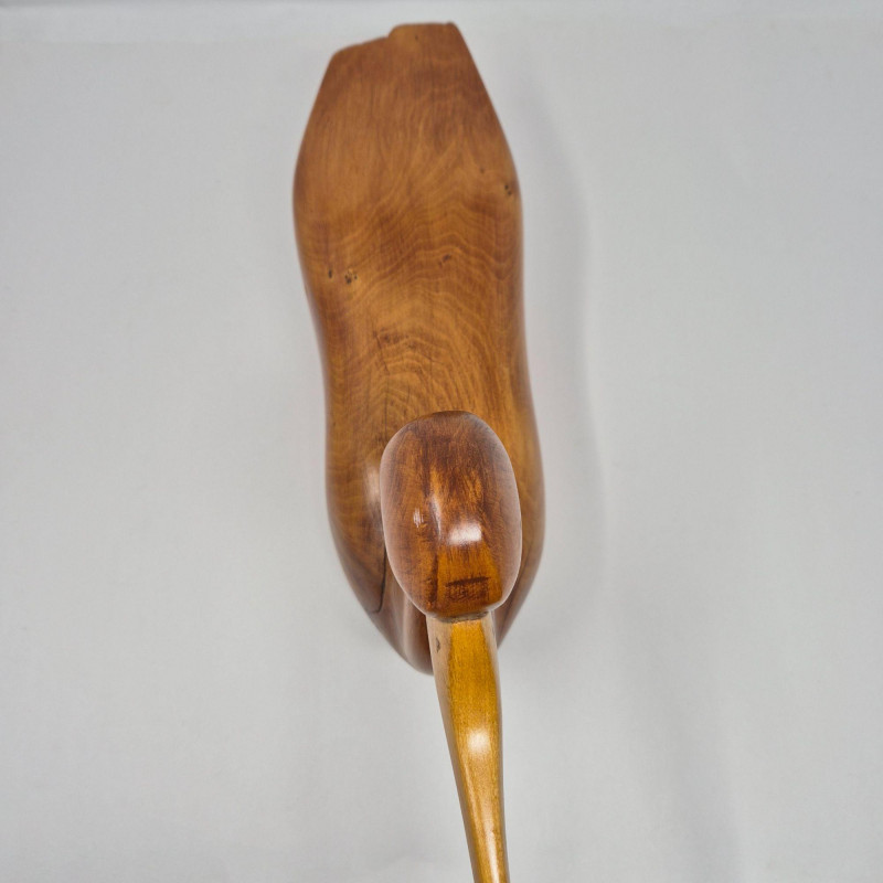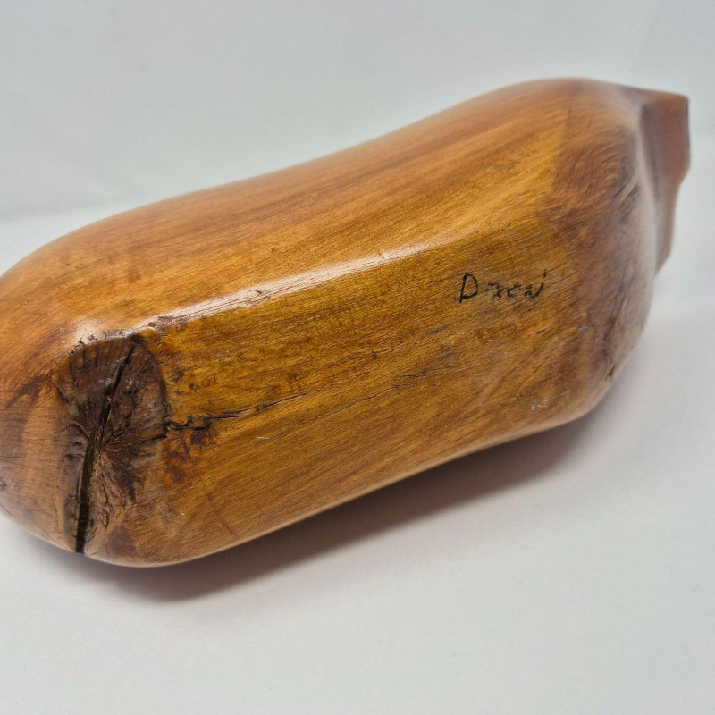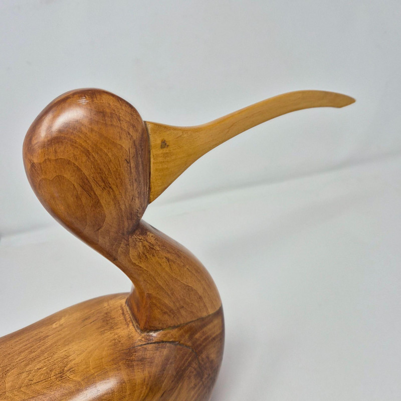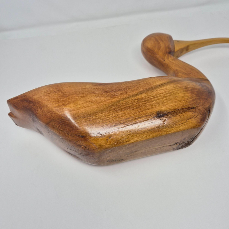 A graceful and expressive carved wood duck sculpture, signed Dixon, showcasing artisan skill and natural charm. This piece features: