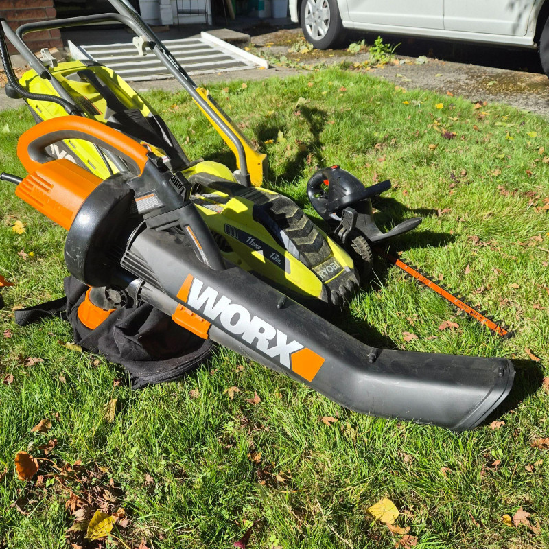 A versatile electric yard tool bundle designed for efficient lawn care and outdoor upkeep. This lot includes: These tools are corded electric, so an extension cord will be required for use. Items show typical outdoor wear and may need minor adjustments or maintenance.