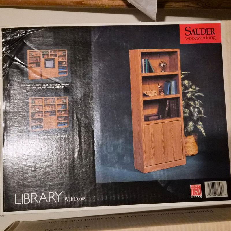 Lot # 110 - NIB Sauder Library with Doors (No. 8692) - Woodland Oak Finish (#1)