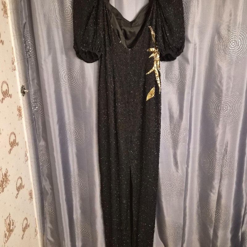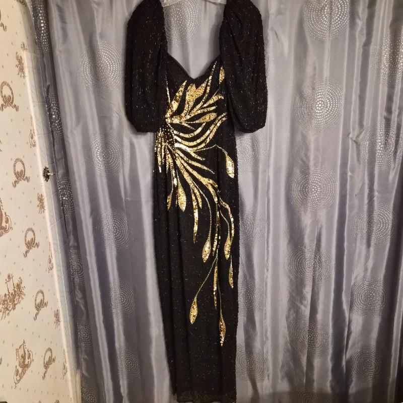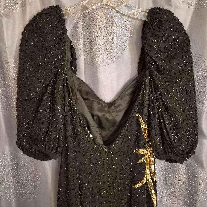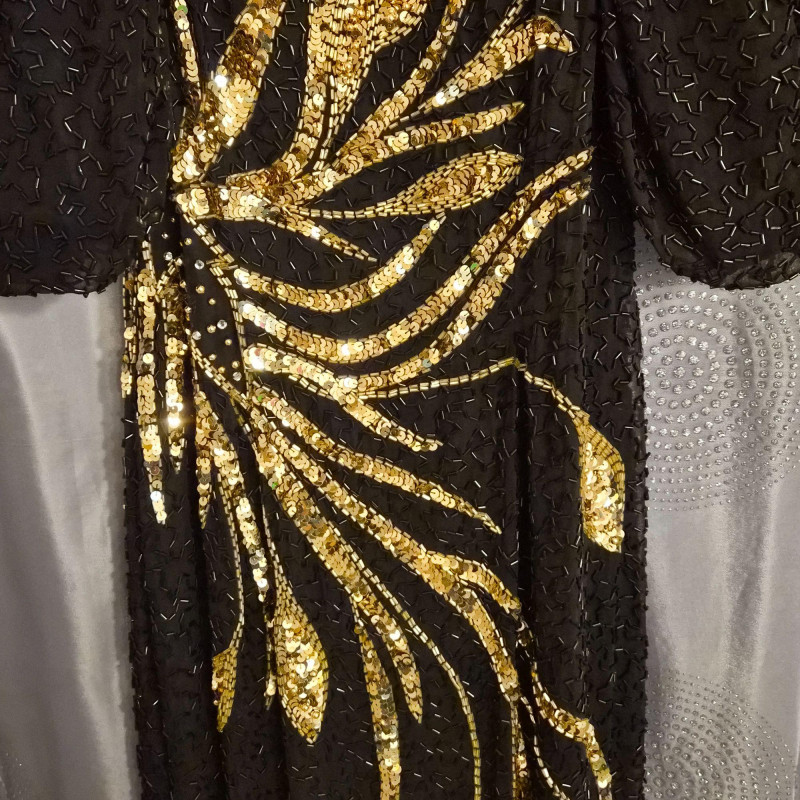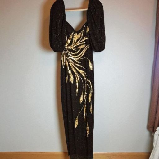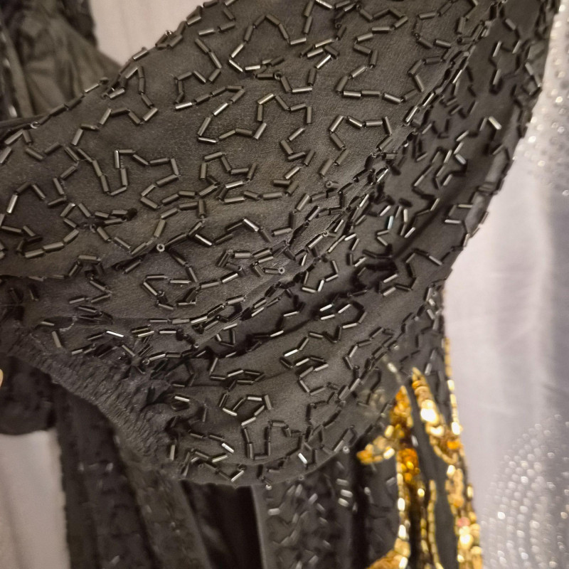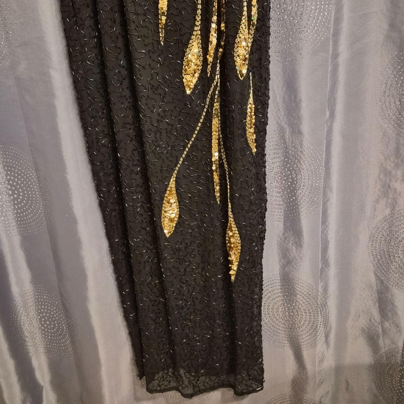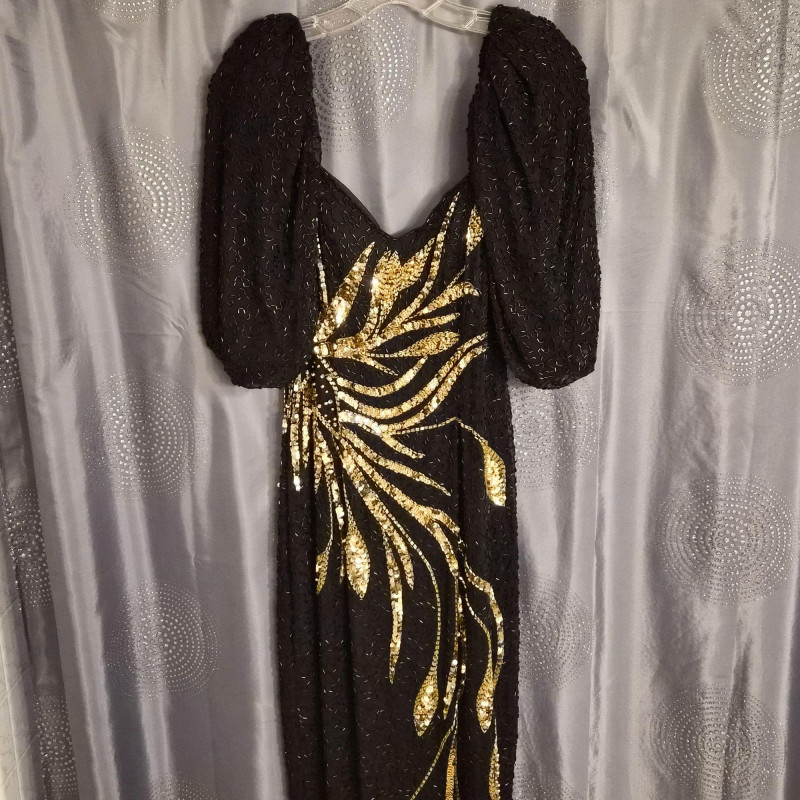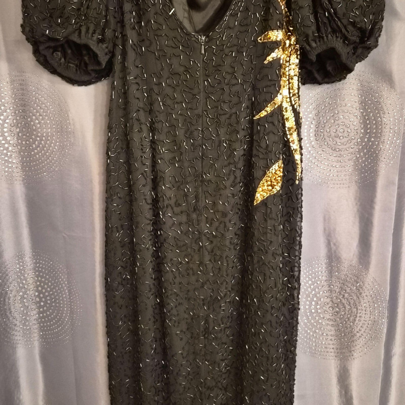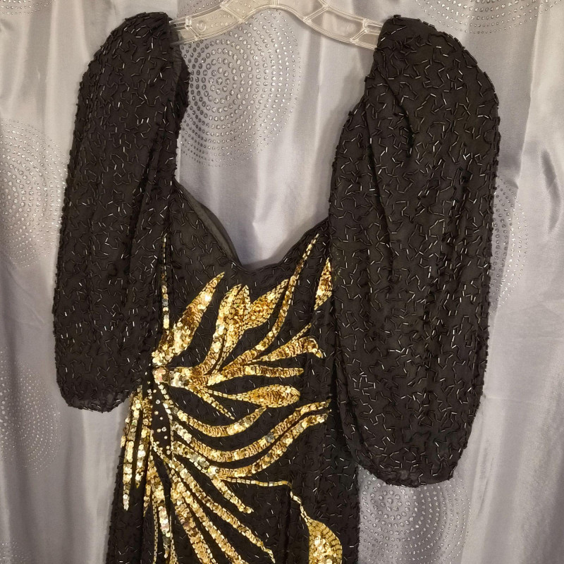 Lot # 120 - Long Formal Black Bead & Gold Sequin Dress Size 4