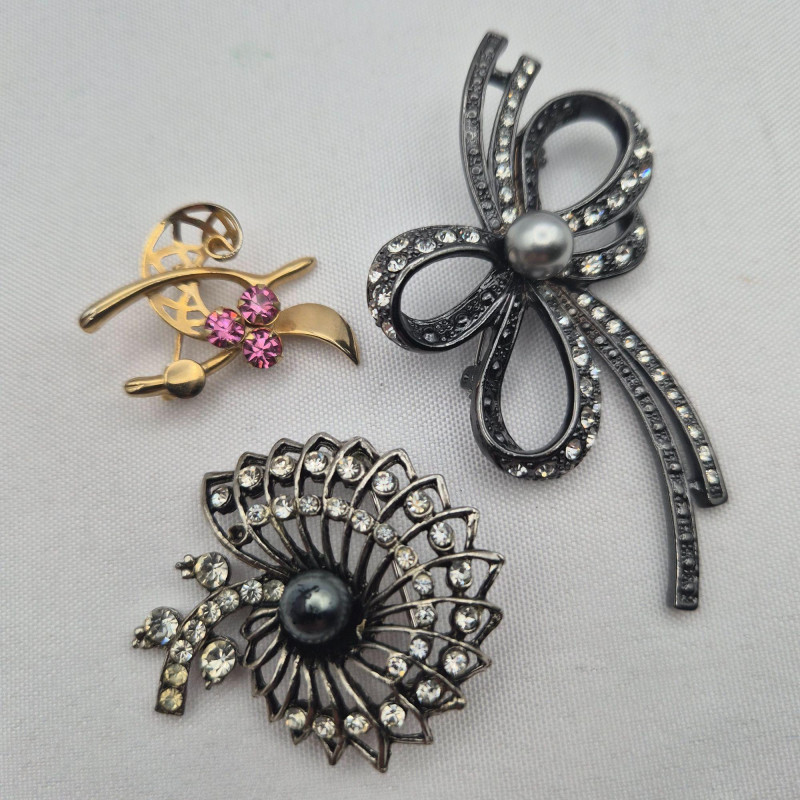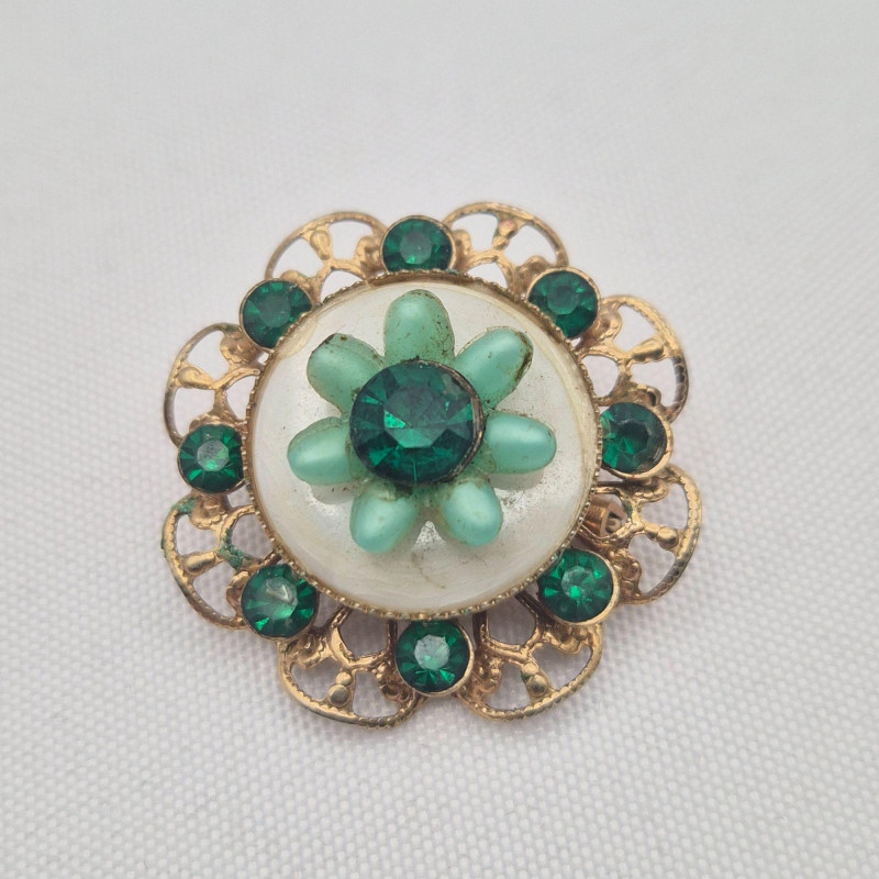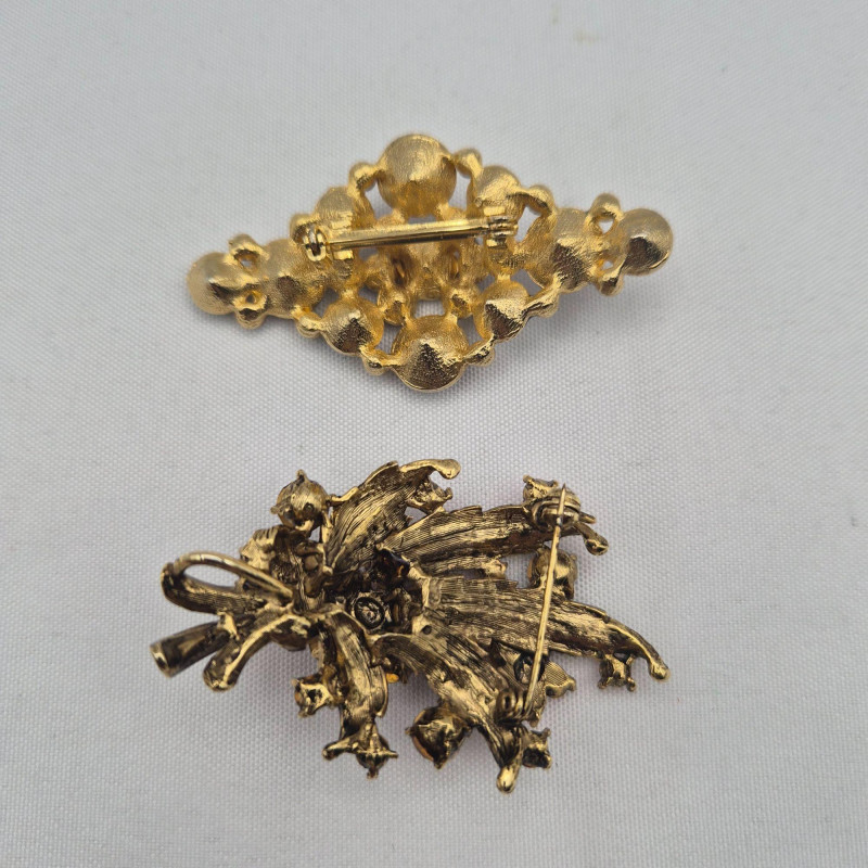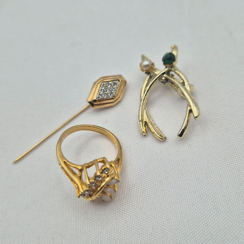 Lot # 122 - Vintage Jewelry Jubilee: Brooches, Ring, Earrings - Rhinestones