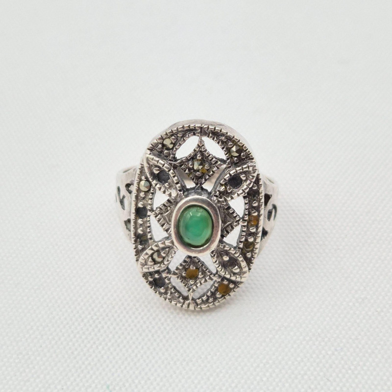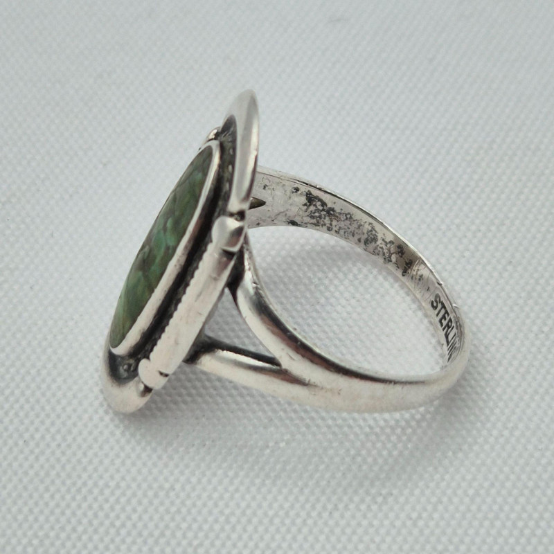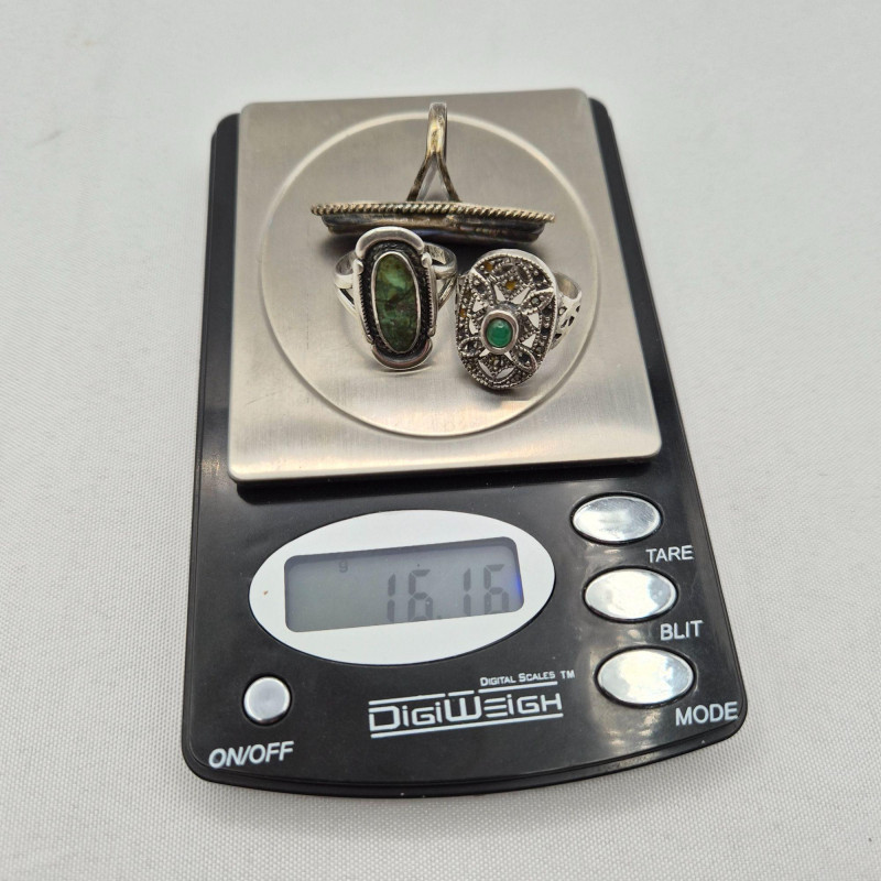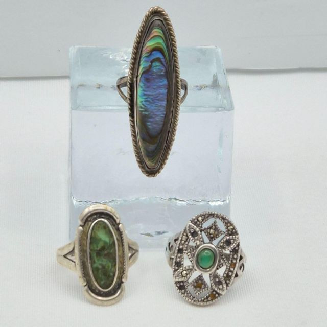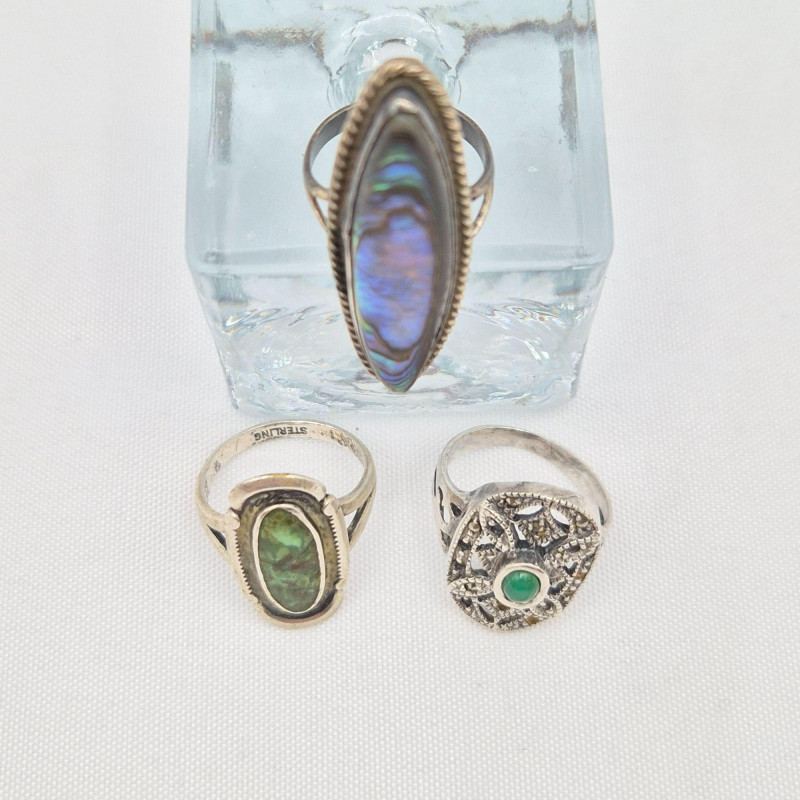 Lot # 124 - Trio Sterling Silver Rings - Abalone, Turquoise, Green Stone