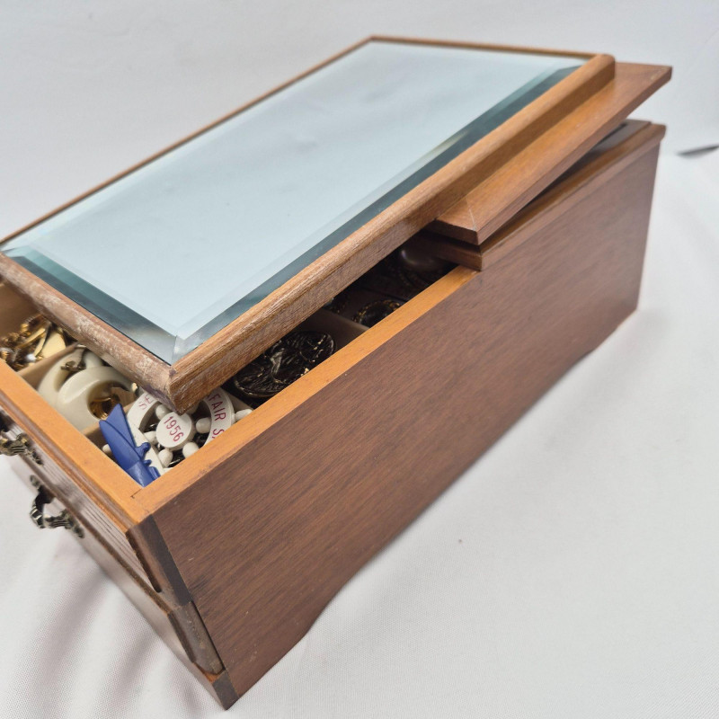 Lot # 104 - Mirrored Wood Jewelry Box Stuffed with Fashion Jewelry