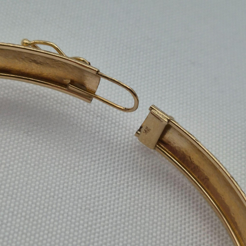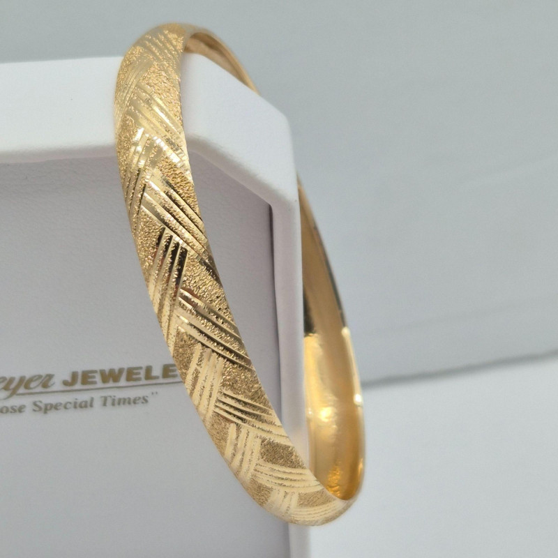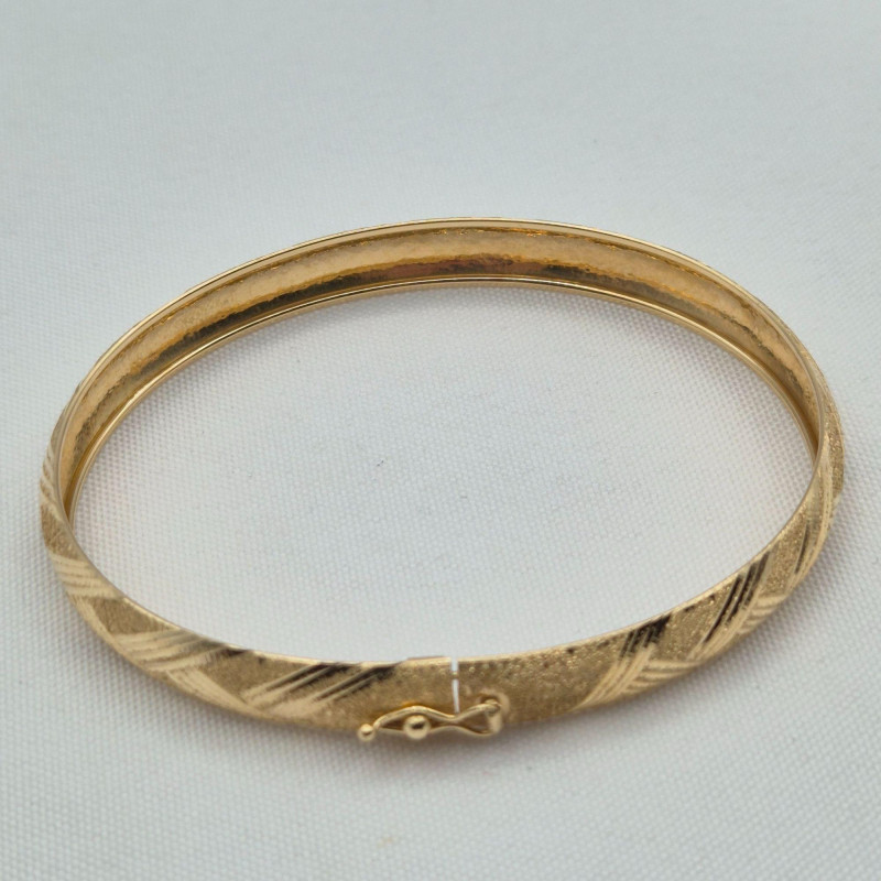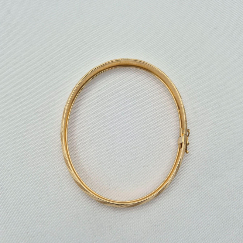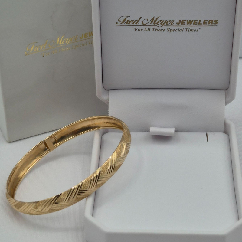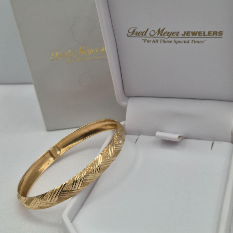 A classic and wearable 14k yellow gold textured flex bracelet, purchased from Fred Meyer Jewelers in 1999. This piece features: