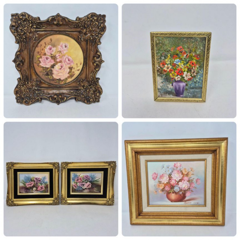 Lot # 130 - Floral Oil Paintings - Ornate, Ceramic and Wood Frames
