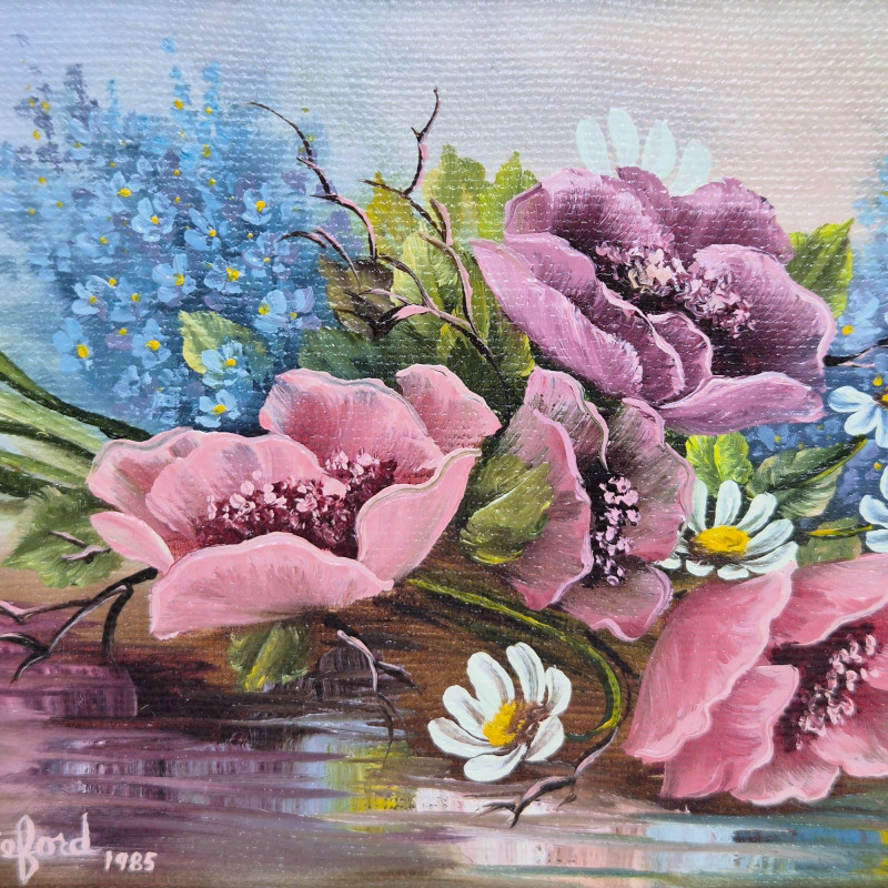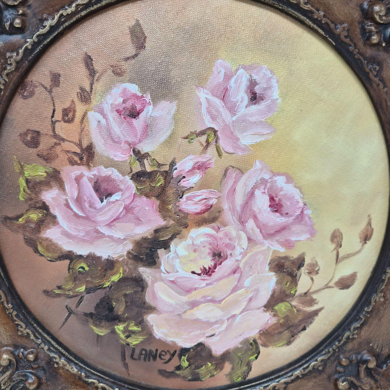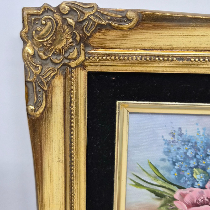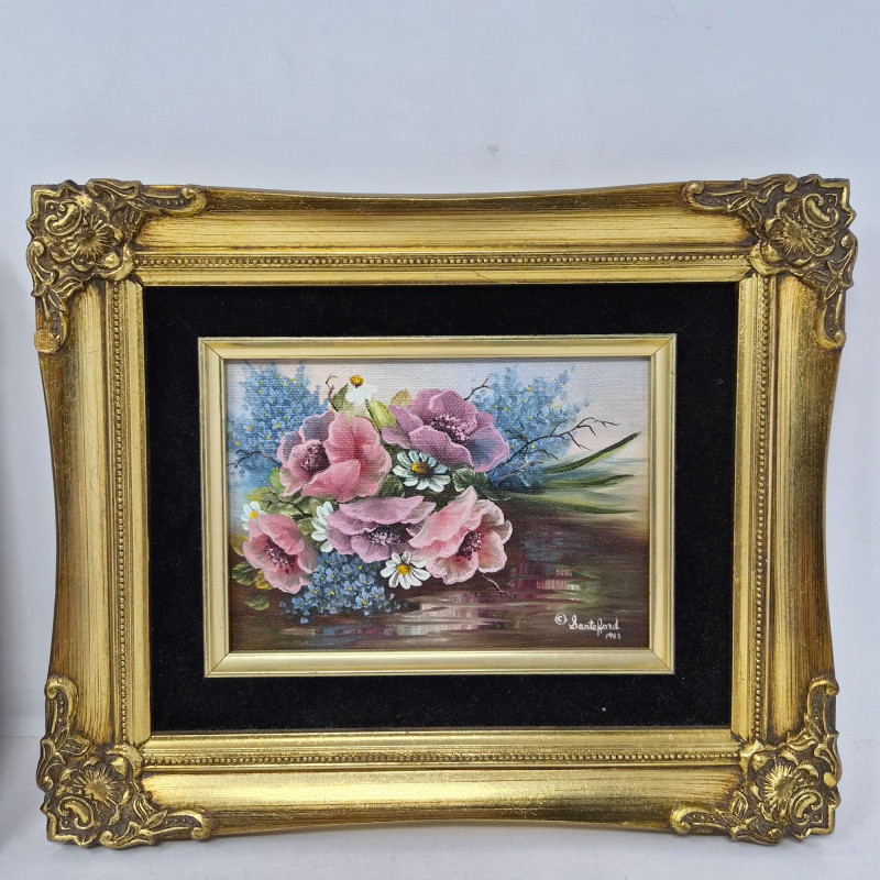 A charming and varied collection of floral oil paintings, each presented in ornate frames that enhance their romantic appeal. This lot includes: