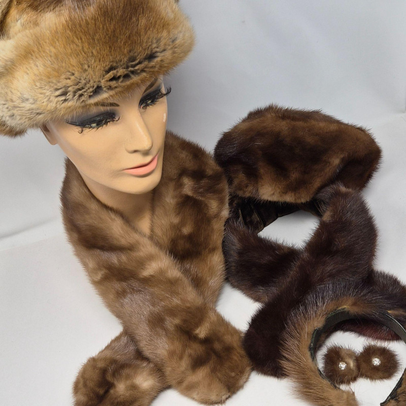 Lot # 140 - Real Fur Accessories - Hat, Earrings, Hairband, Fur Collars with Clips