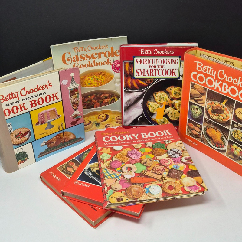 A charming collection of vintage Betty Crocker cookbooks spanning the 1960s to 1980s, filled with classic recipes, cheerful illustrations, and retro kitchen wisdom. Includes: These books offer more than recipes—they’re a window into decades of American home cooking, ideal for collectors, nostalgic cooks, or anyone curating a vintage kitchen library.