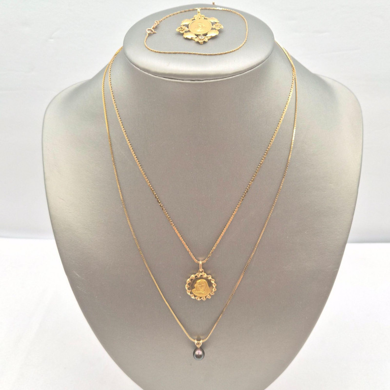 Lot # 3 - 14k & 18k Gold Jewelry – Tahitian Pearl, Mother Mary Pendant, Bracelet