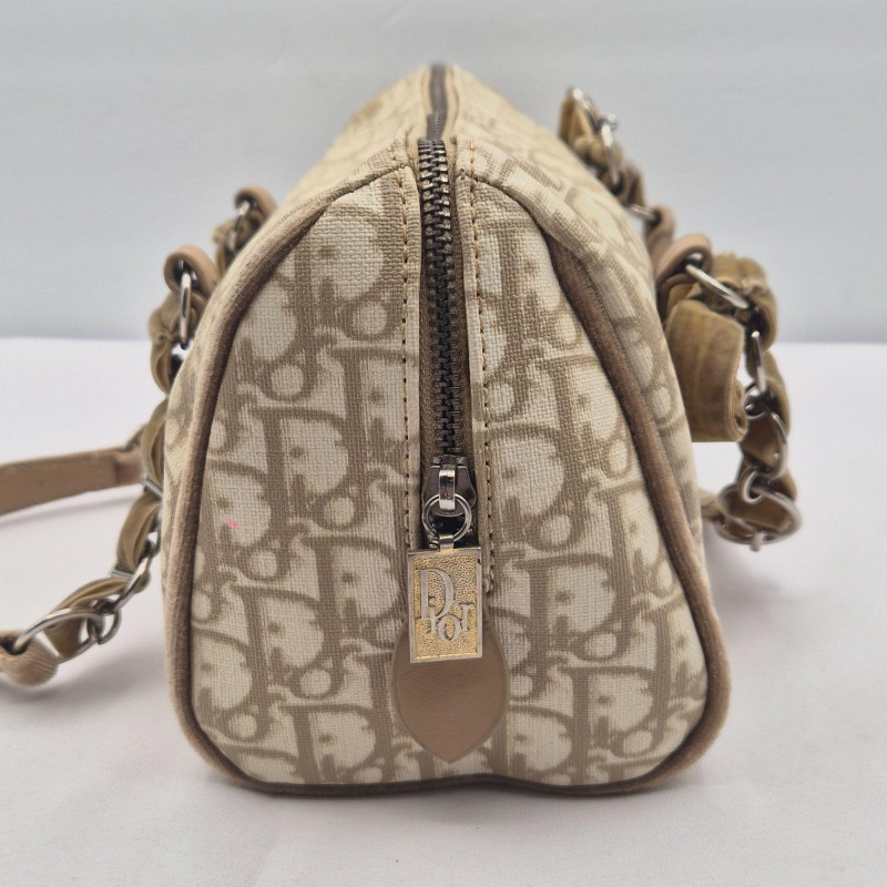 A lovely Dior-style handbag, sold as a replica and as-is, featuring: Measures 12" long x 7" tall x 5" deep. A charming piece for styling, display, or everyday use with designer-inspired flair.