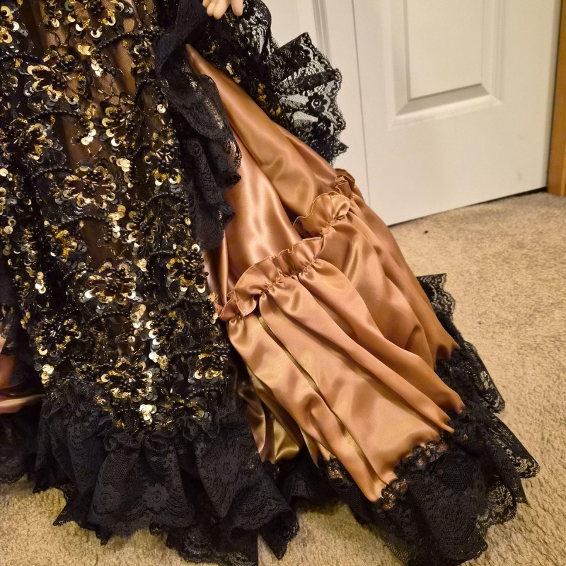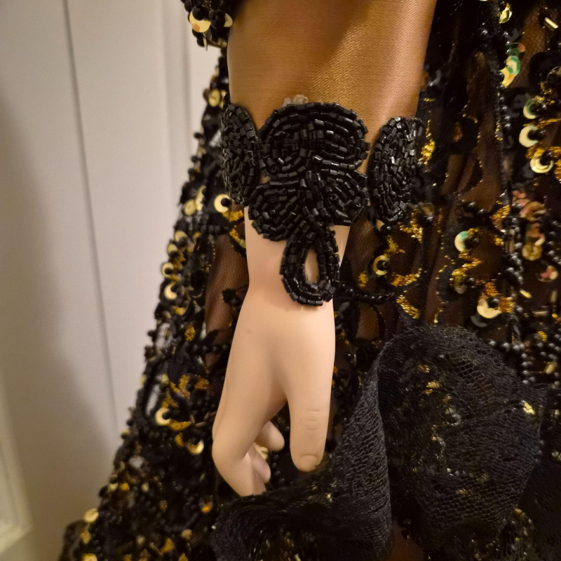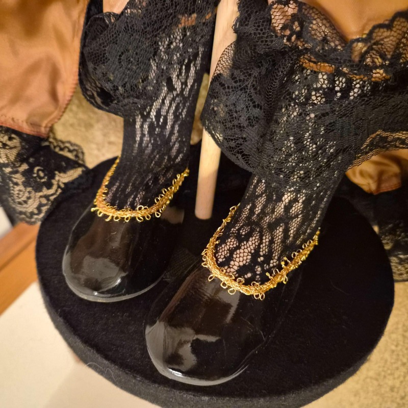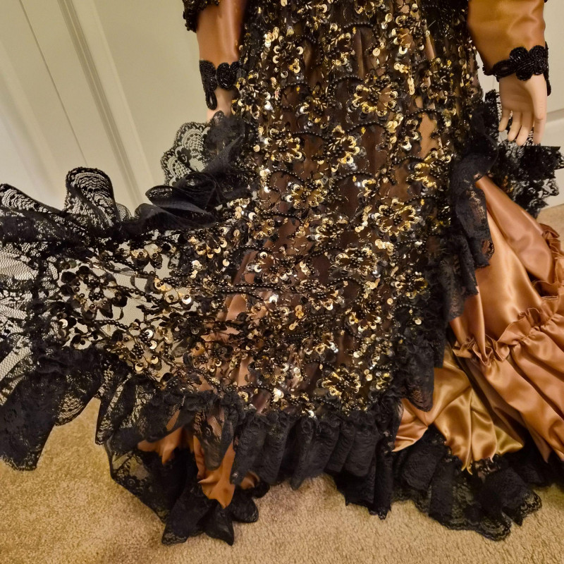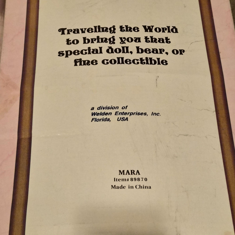 A dramatic and elegant presence, Mara is a limited edition Victorian fashion doll created by award-winning artist Rustie for the Welden Museum of Fine Collectibles. Standing an impressive 41 inches tall, she wears an antique-style golden gown adorned with black beads, lace, and a feathered hat — all intact and richly detailed. Mara is a striking display piece for collectors who appreciate limited editions, Victorian elegance, and the artistry of high fashion dolls.