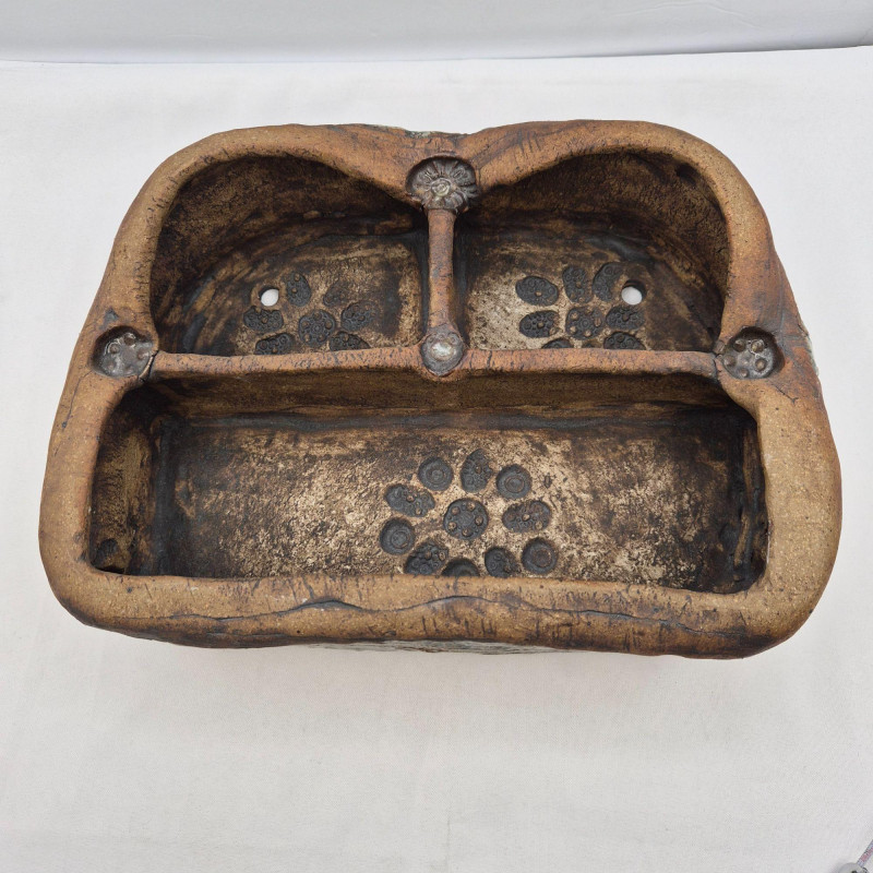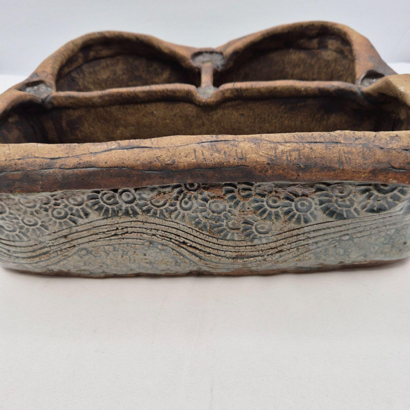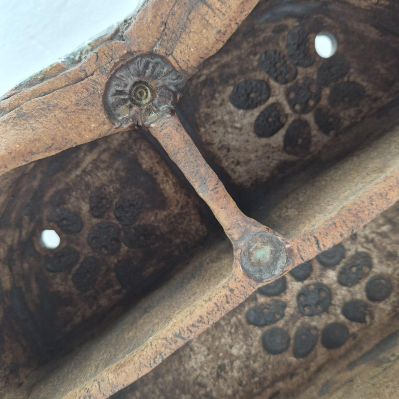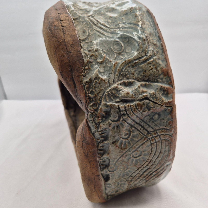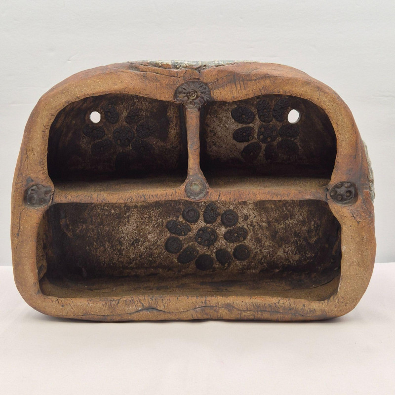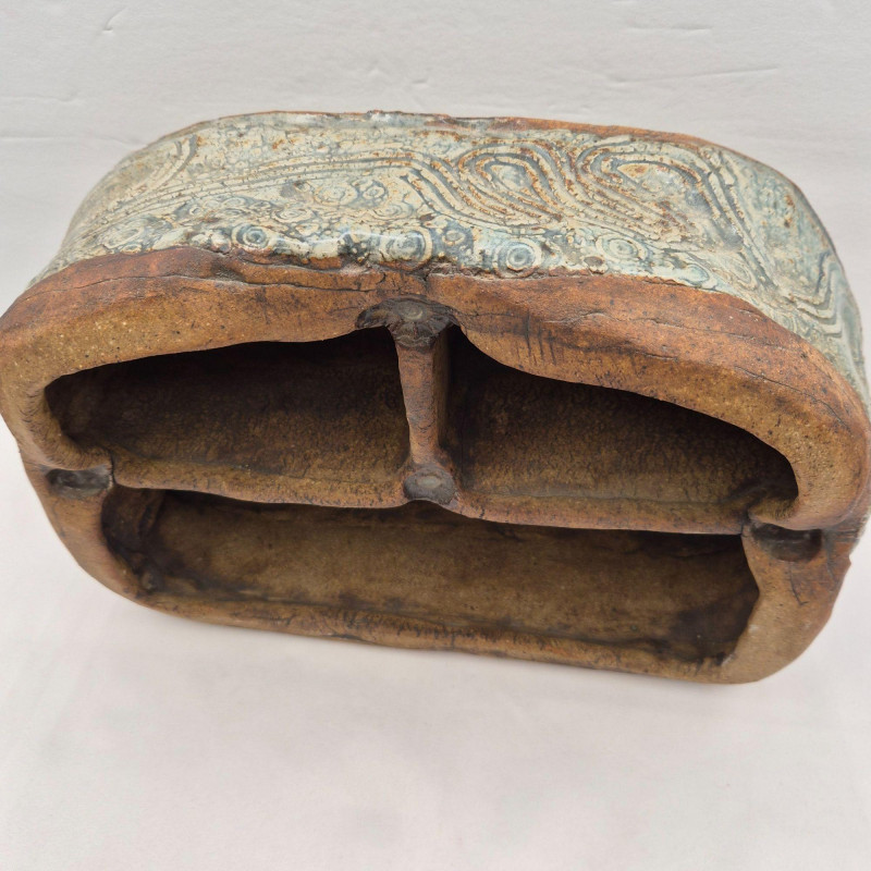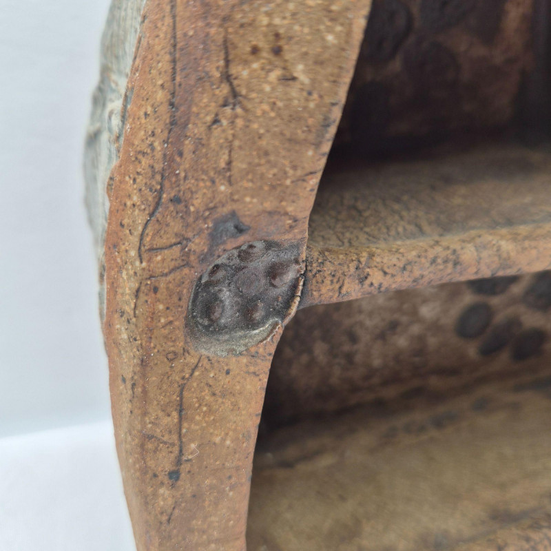 A unique and expressive ceramic piece, crafted with care and character: Whether used as a small shelf, art object, or conversation piece, this curio offers vintage soul and artisan appeal.
