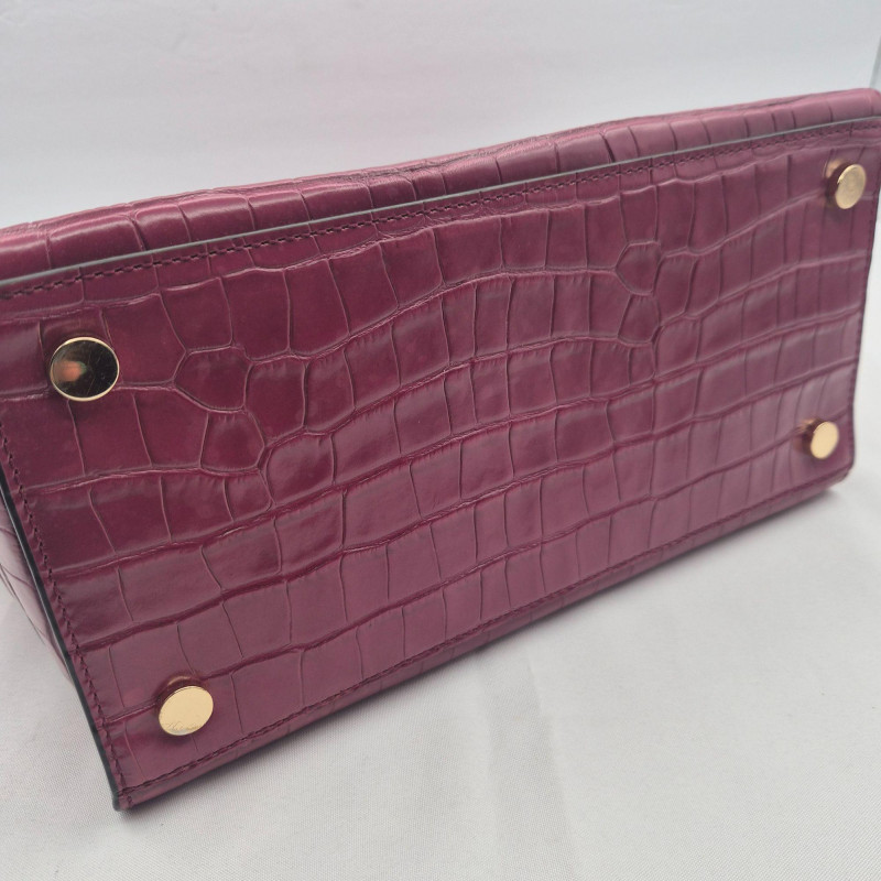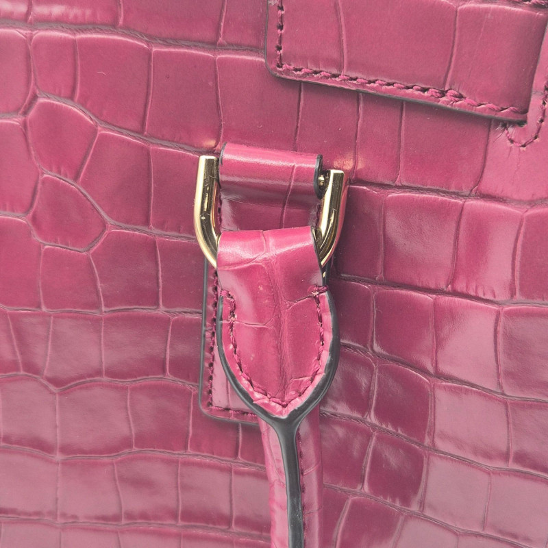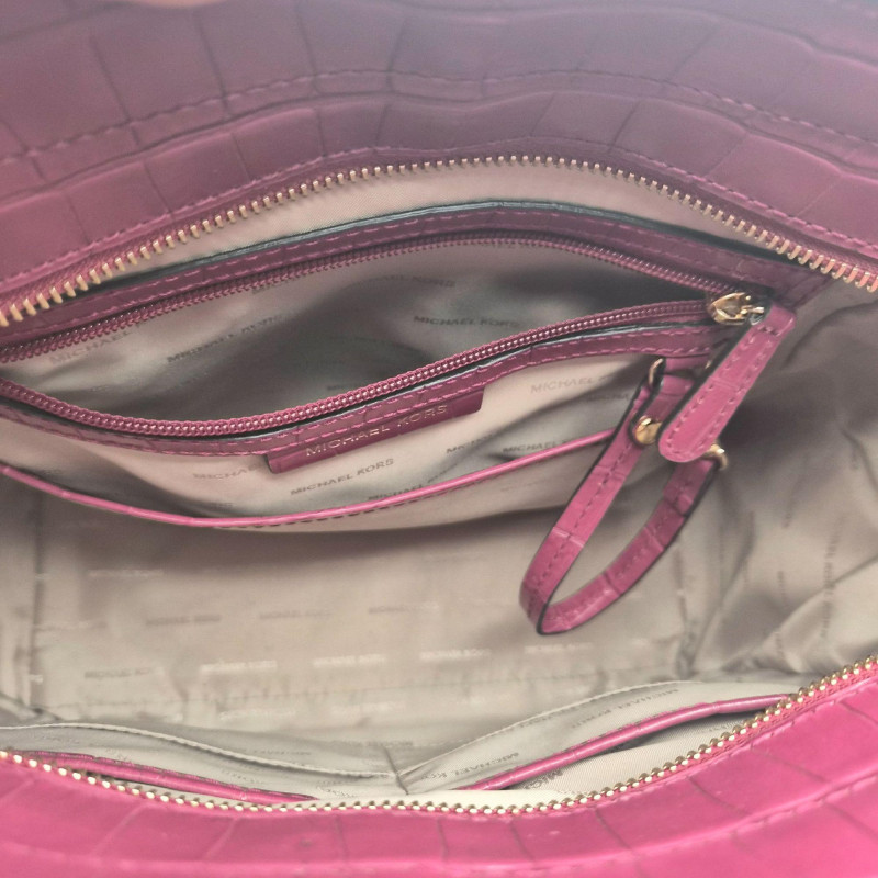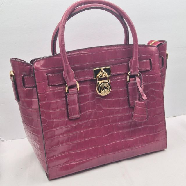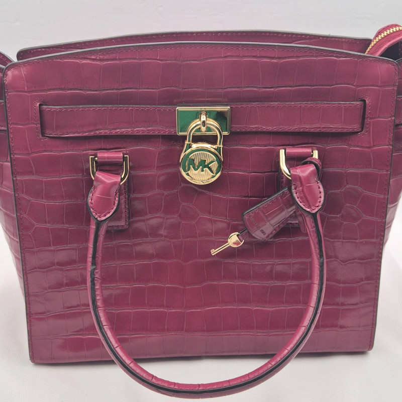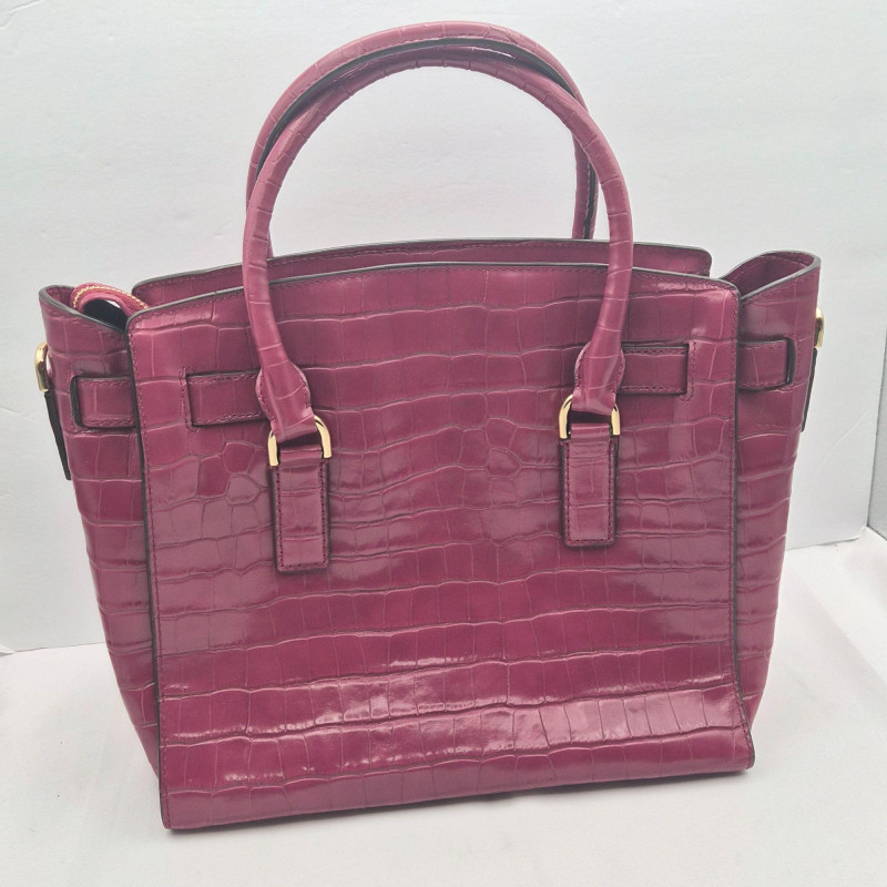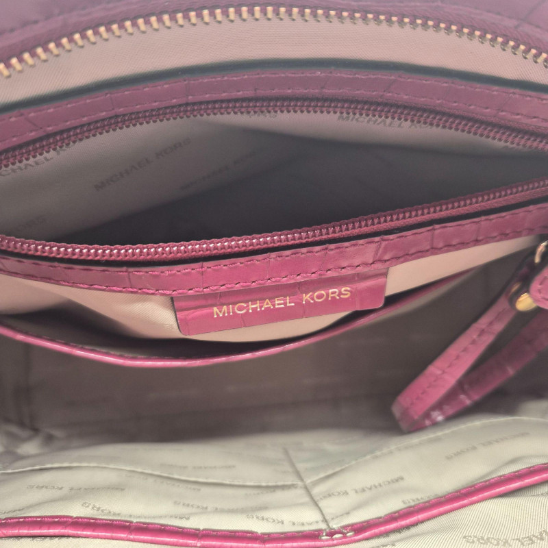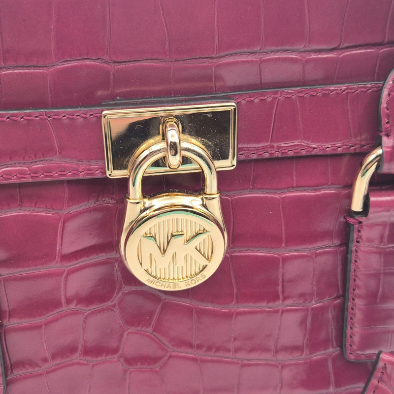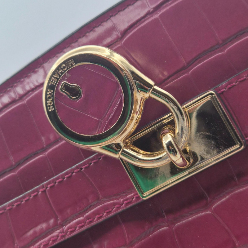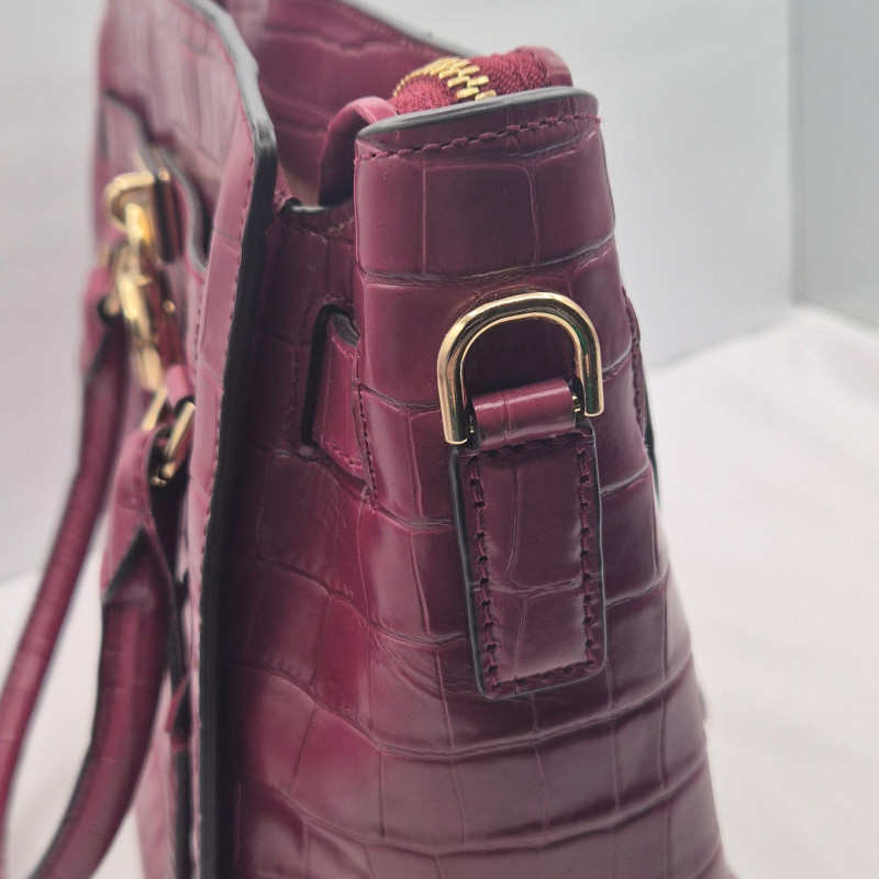 Lot # 31 - Michael Kors Croc-Embossed Berry Handbag with Gold Tone Hardware