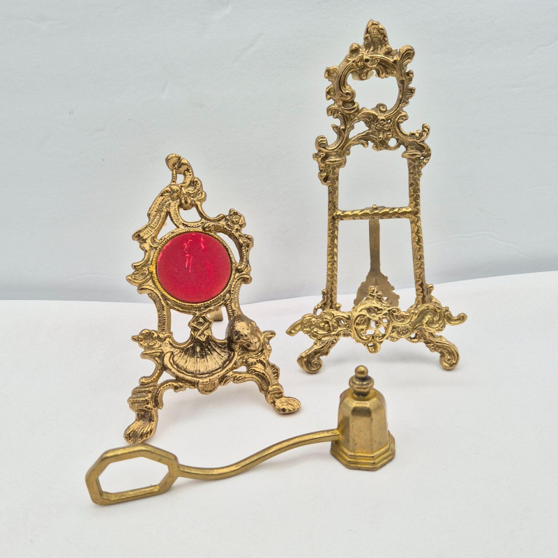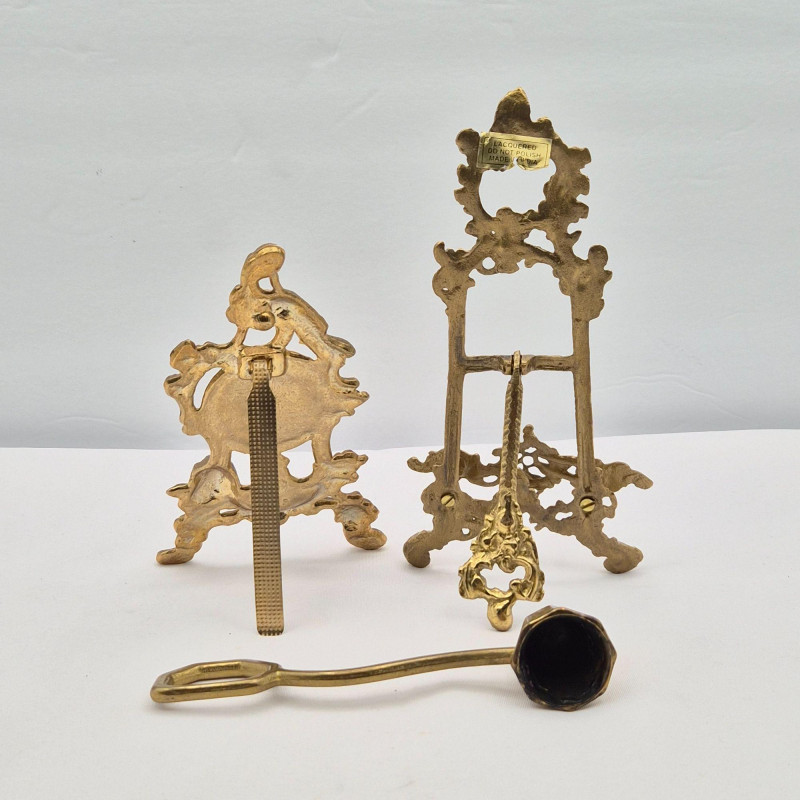 Lot # 93 - Vintage Brass Easels – For Pocket Watches, Small Plates & Snuffer
