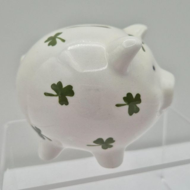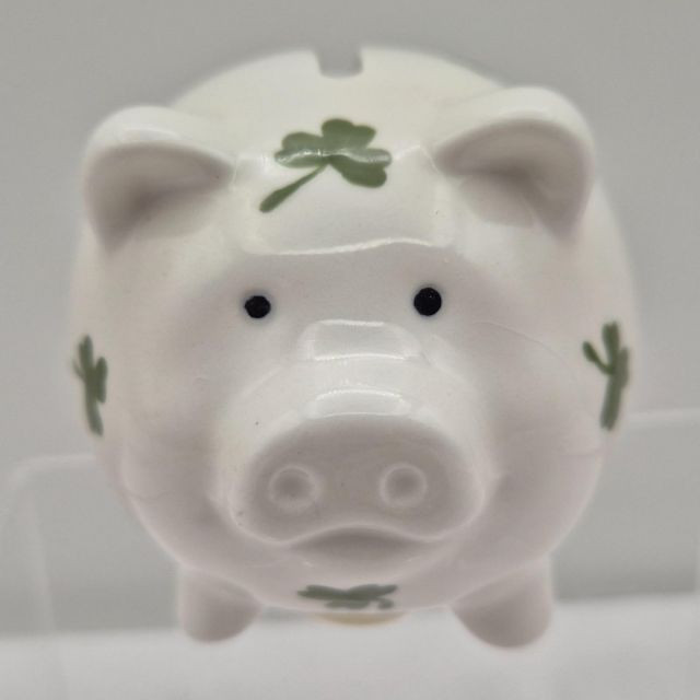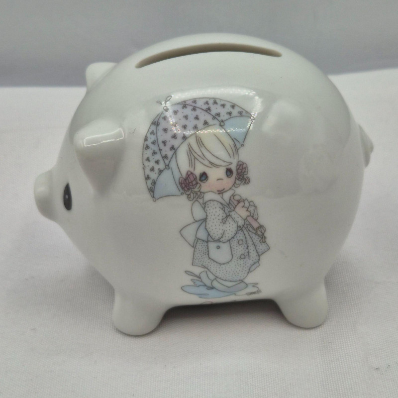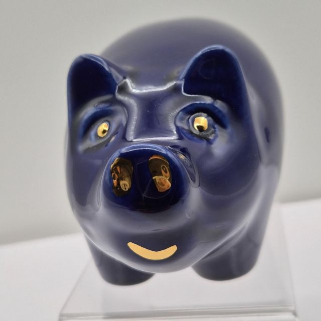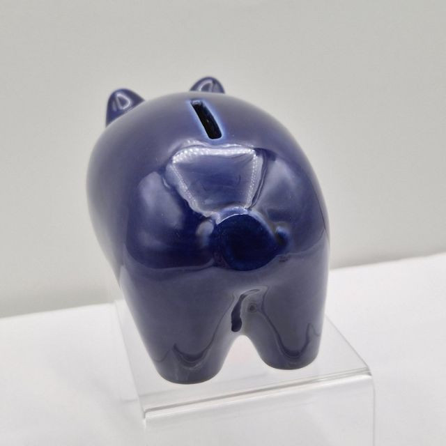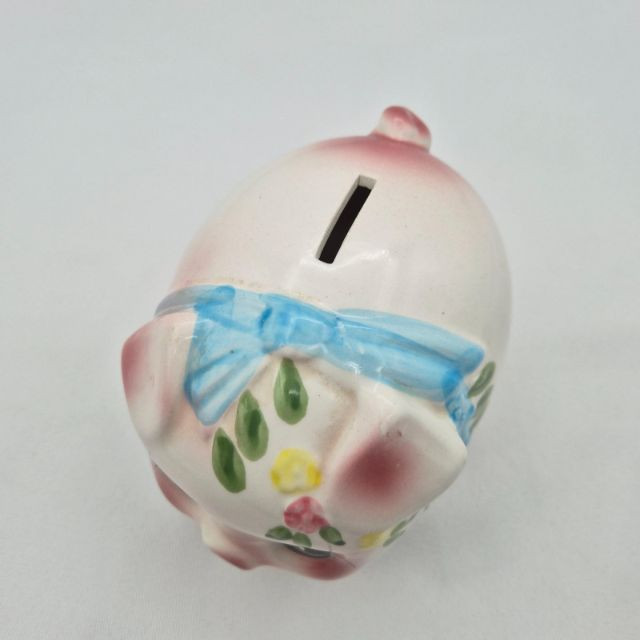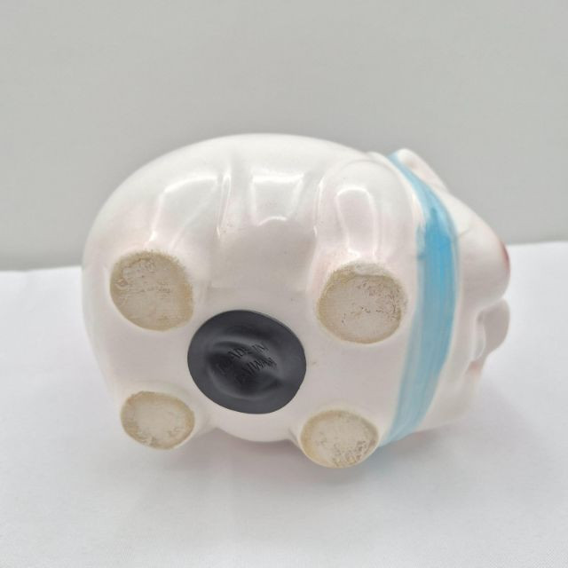 A delightful set of four vintage ceramic piggy banks, each with its own unique personality and nostalgic appeal. All include well-fitting stoppers and are ready for display or coin-saving fun: