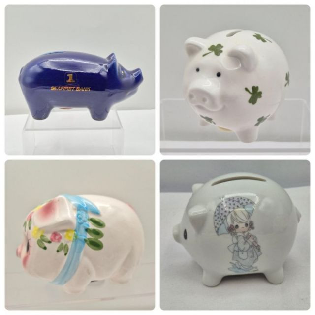 Lot # 61 - Vintage Ceramic Piggy Bank Quartet - Enesco, Seafirst, Hand Painted