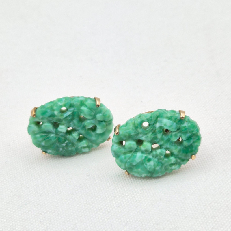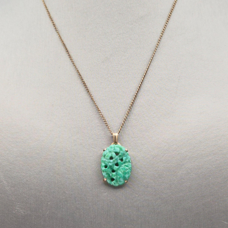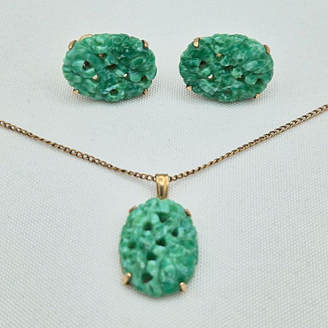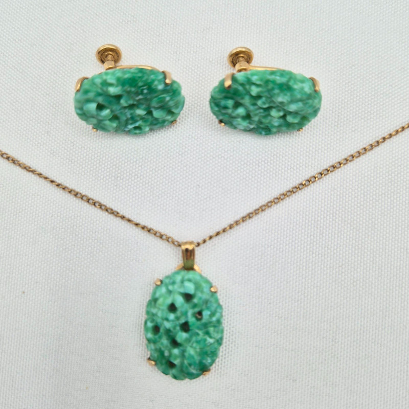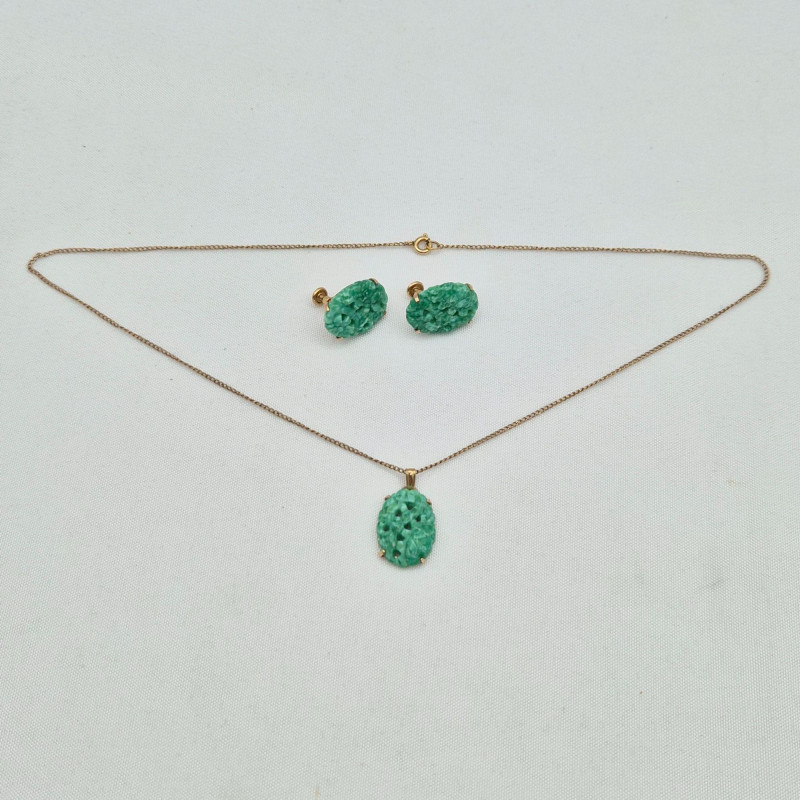Lot # 55 - Van Dell 12k Gold-Filled Jade Necklace & Earrings Set
