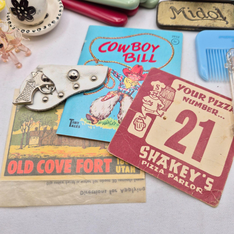 A whimsical mix 'grab bag' of vintage and collectible curiosities, this lot is a delight for treasure hunters and creative decorators. Includes: