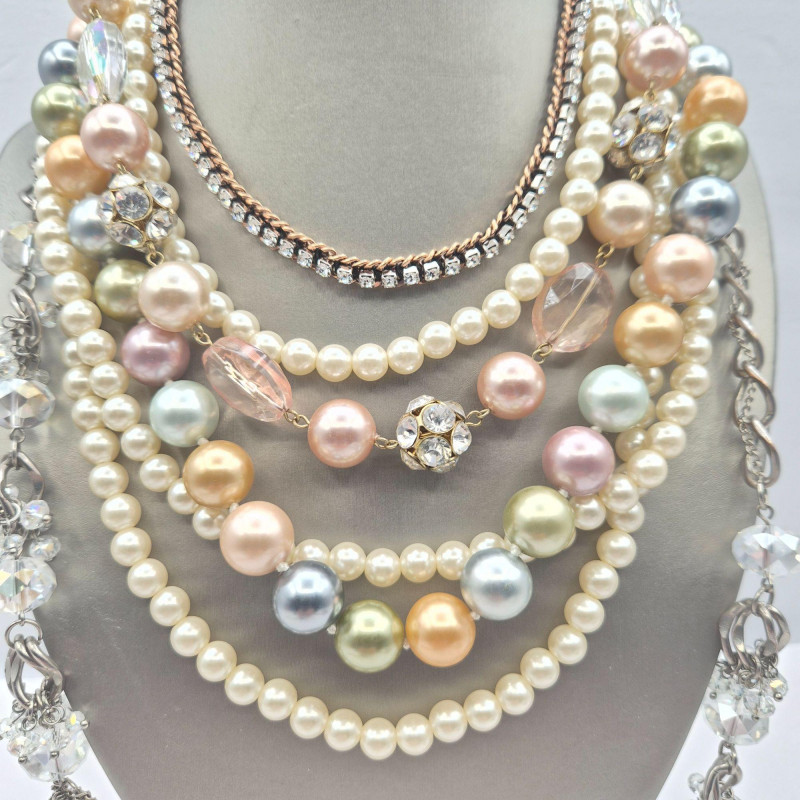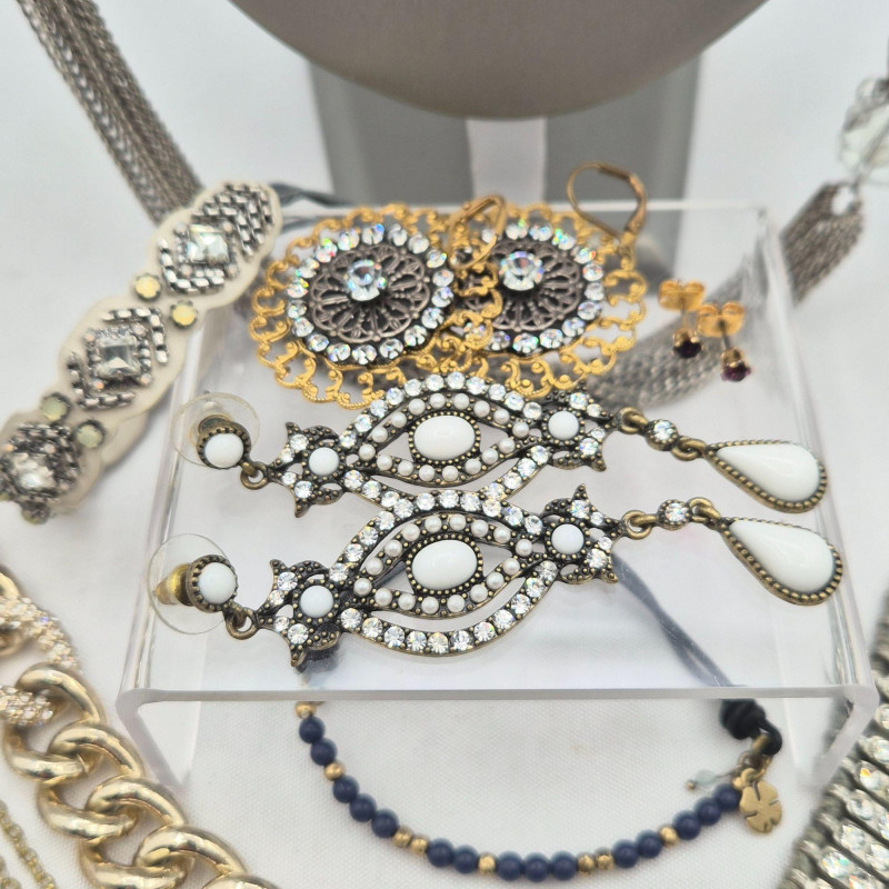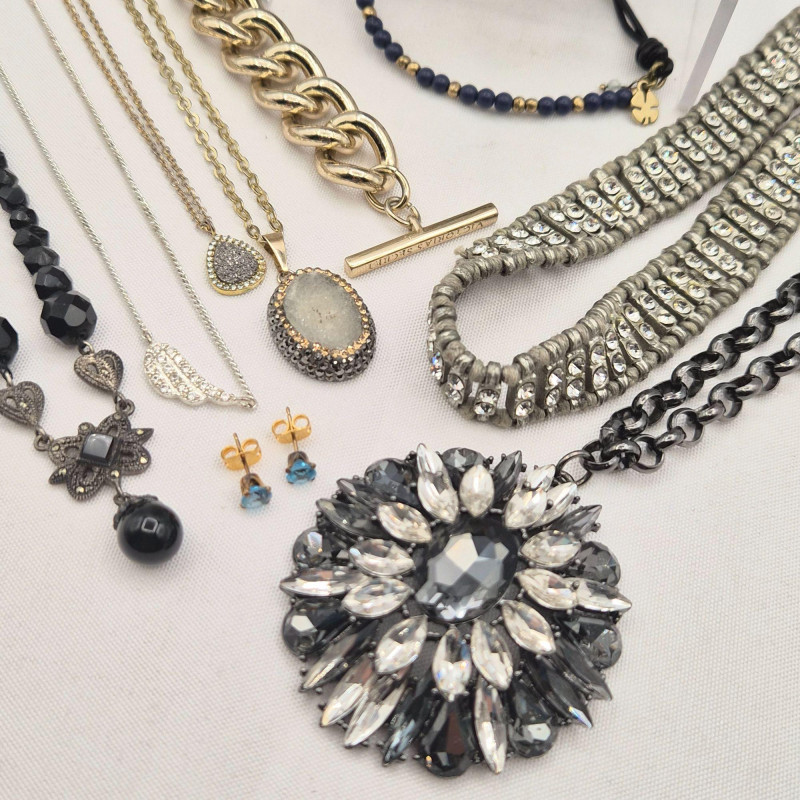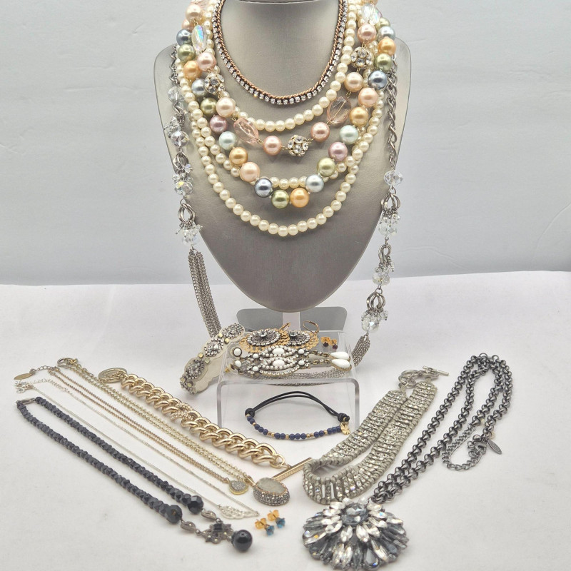 A dazzling mix of designer and fashion jewelry, featuring rhinestones, beads, and brand-name flair:
