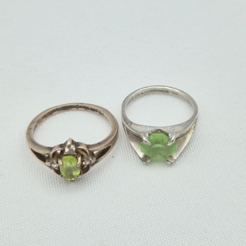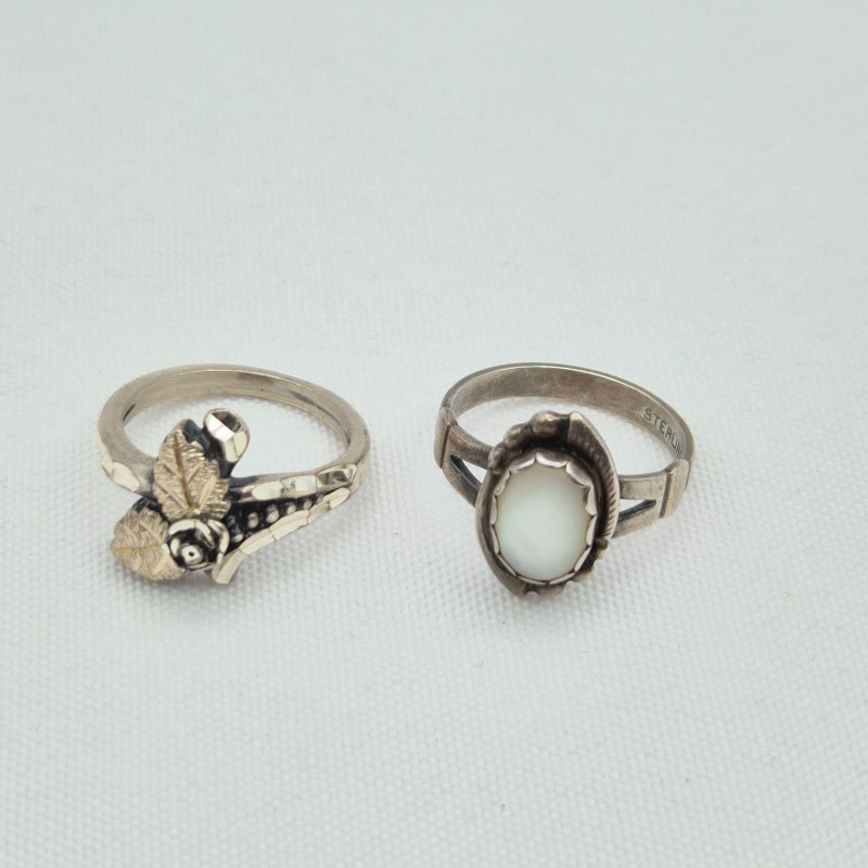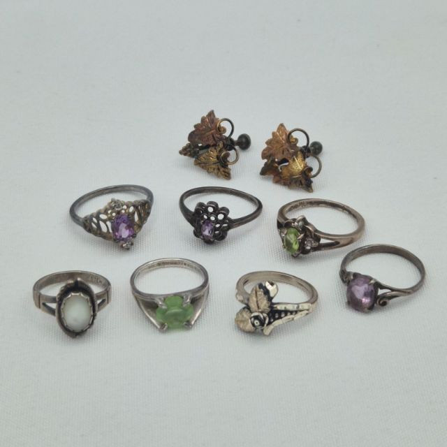 Lot # 63 - Seven Petite 925 Rings, Sterling Tri-Color Leaf Earrings