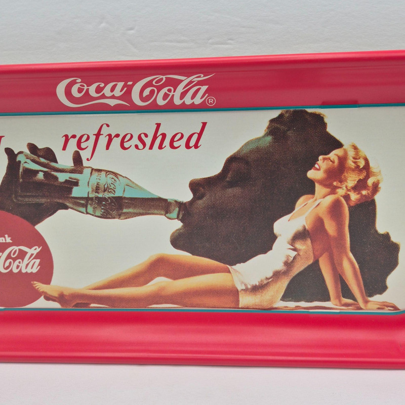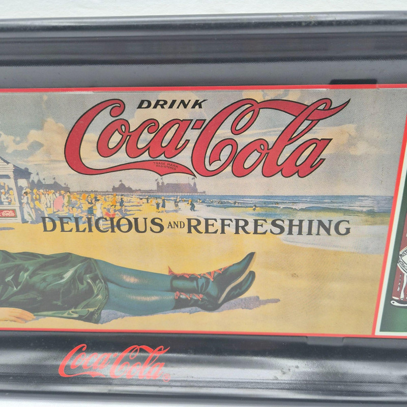 A vibrant set of four Coca-Cola reproduction advertisement trays, each measuring 19" x 8.25", showcasing classic branding from the 1970s through the 1990s. These metal trays feature iconic imagery and vintage flair, ideal for wall display, shelf styling, or serving with a splash of Americana. Whether you're a Coke memorabilia collector or just love retro graphics, this set delivers timeless refreshment.