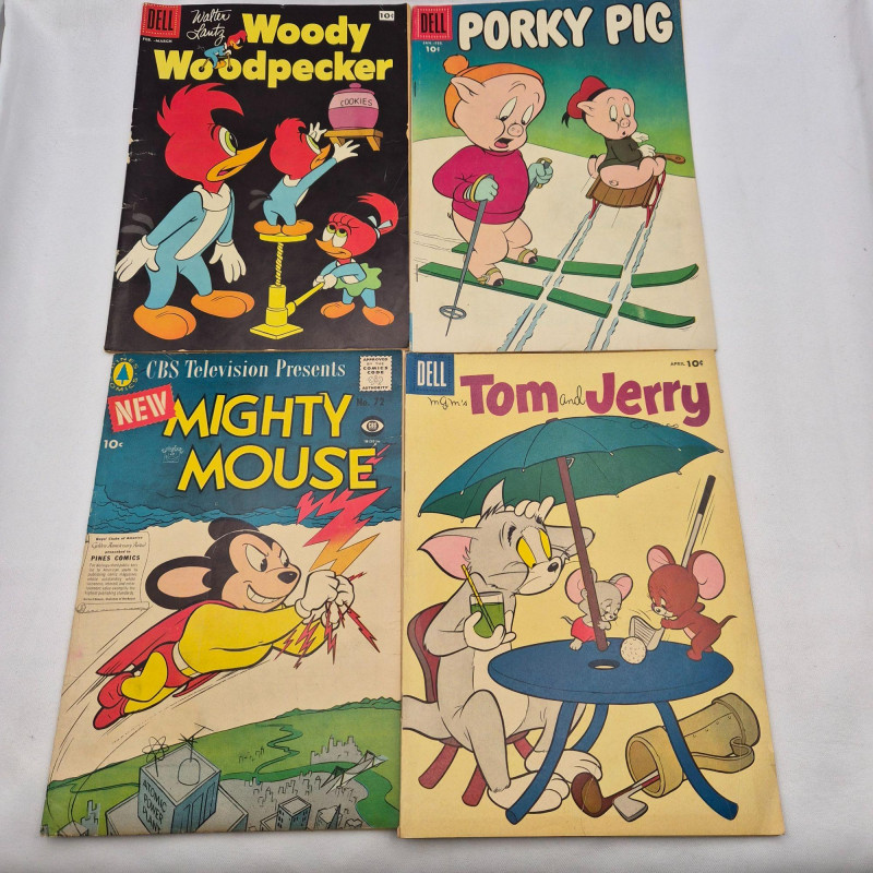 A colorful and nostalgic assortment of vintage comic books from beloved publishers and iconic franchises: A joyful lot for comic book collectors, animation historians, or anyone seeking a dose of retro fun.