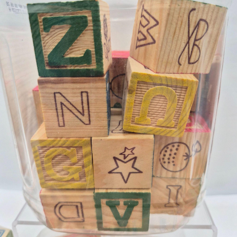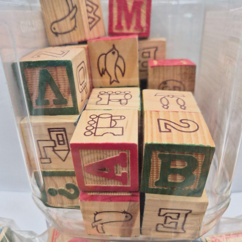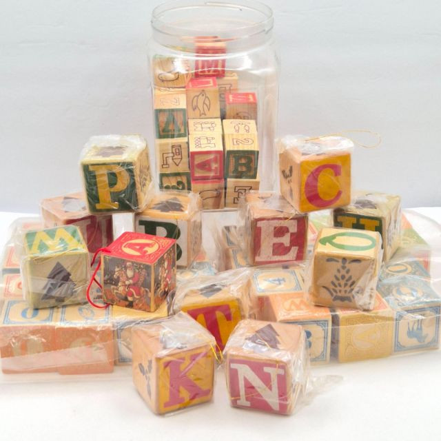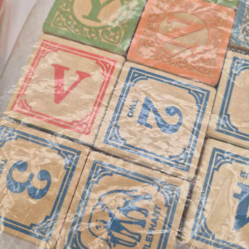 70 vintage wood blocks featuring letters, numbers, and picture graphics, made in Taiwan. These colorful blocks are perfect for: Whether you're styling a nursery, crafting holiday keepsakes, or collecting vintage toys, this set offers endless creative possibilities.