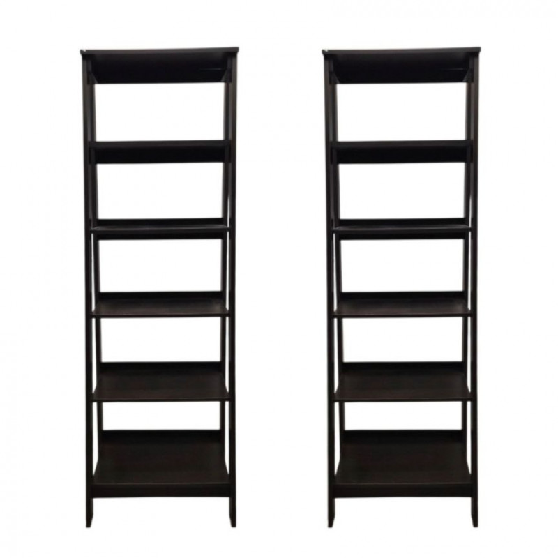 Lot # 101 - Pair of Black Tiered Shelving Units – 5-Shelf, Compact & Stylish