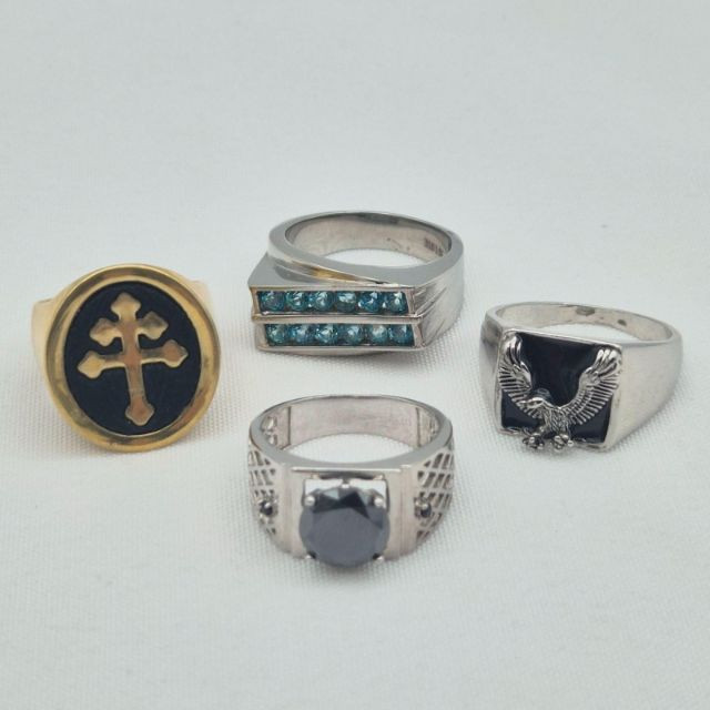 Lot # 81 - Men’s Fashion Ring Collection – Gold & Silver Tone with Created Stones