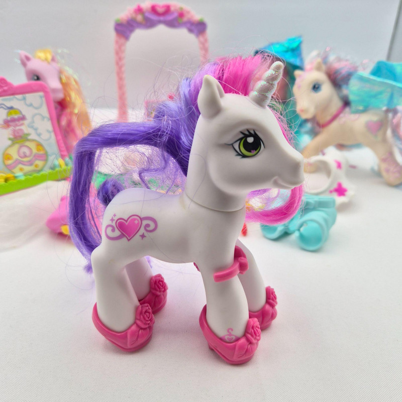 A magical mix of My Little Pony figures and accessories, mostly dating from 2007, with a few earlier surprises. This lot includes: