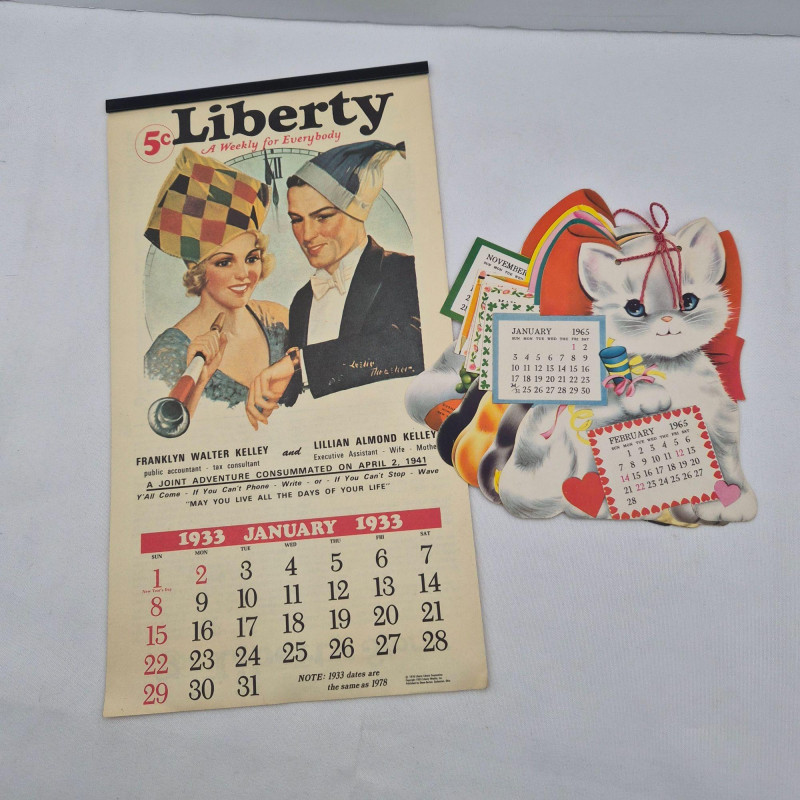 Lot # 99 - Two Complete Paper Calendars - Kittens 1965, Liberty Ads (1933)1978