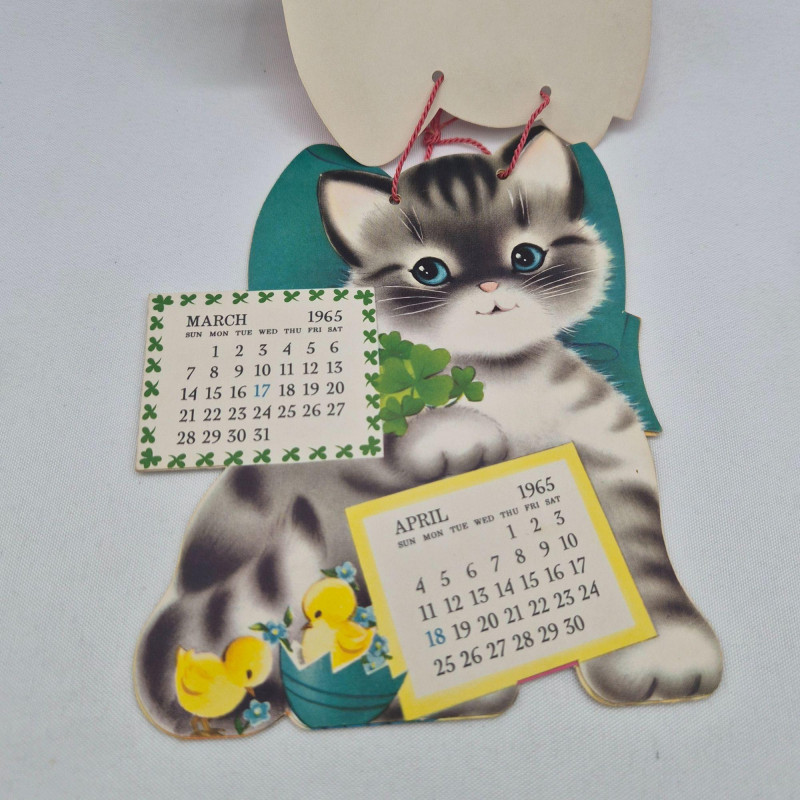 This delightful duo of complete vintage paper calendars offers a double dose of charm and nostalgia: Both calendars are intact and ready to display, scrapbook, or gift. Ideal for fans of vintage advertising, cat-themed collectibles, and graphic design history.