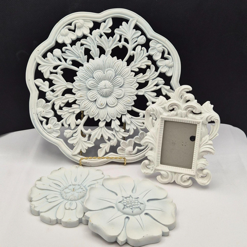 Lot # 86 - White Floral Wall Décor & Frame – Shabby Chic Style