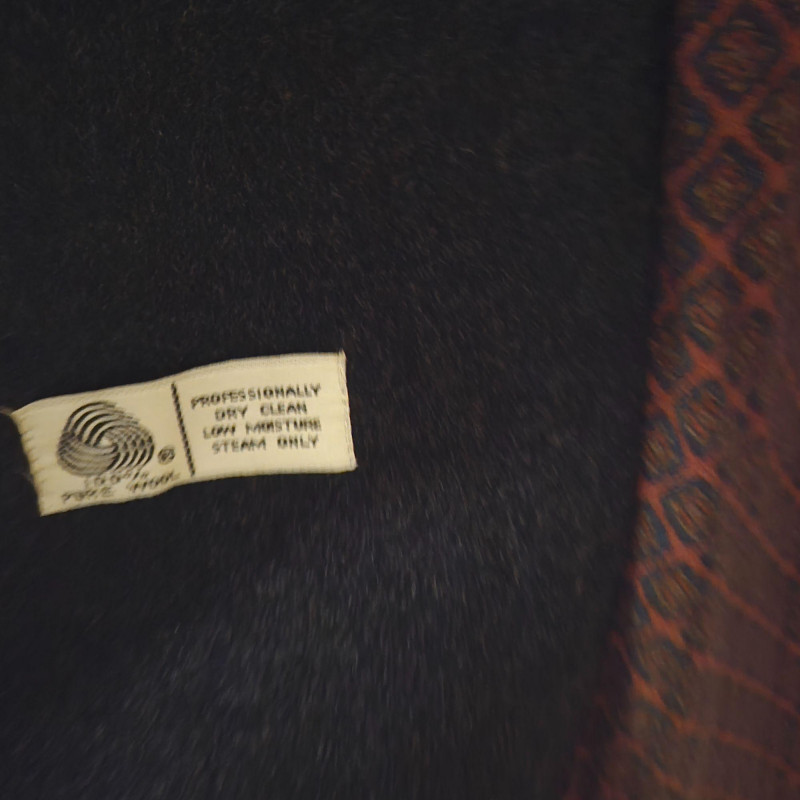 A classic 100% wool trench coat in rich black twill, offering timeless style and mid-century department store heritage: