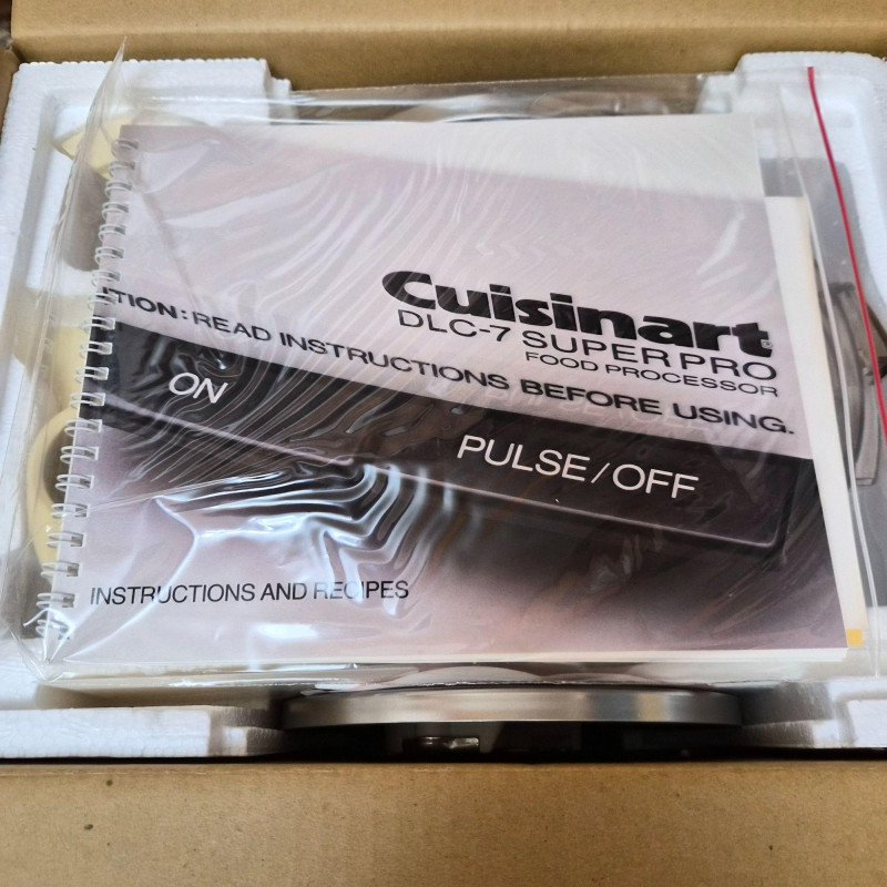 A new in box (NIB) Cuisinart DLC-7 Super Pro food processor—an iconic model from the golden age of kitchen innovation. This vintage unit features: Ideal for collectors, retro appliance lovers, or anyone seeking a powerhouse prep tool with vintage charm and lasting utility.