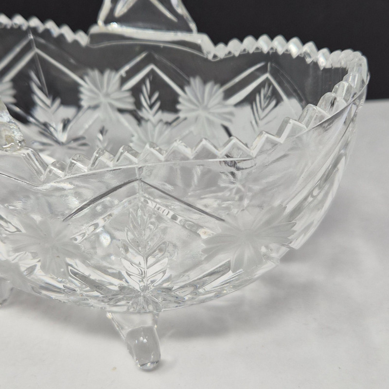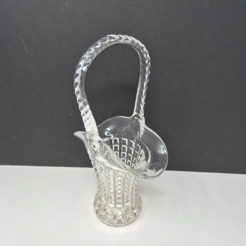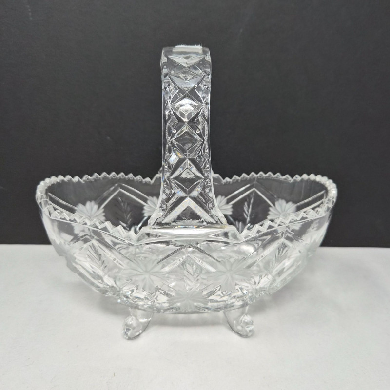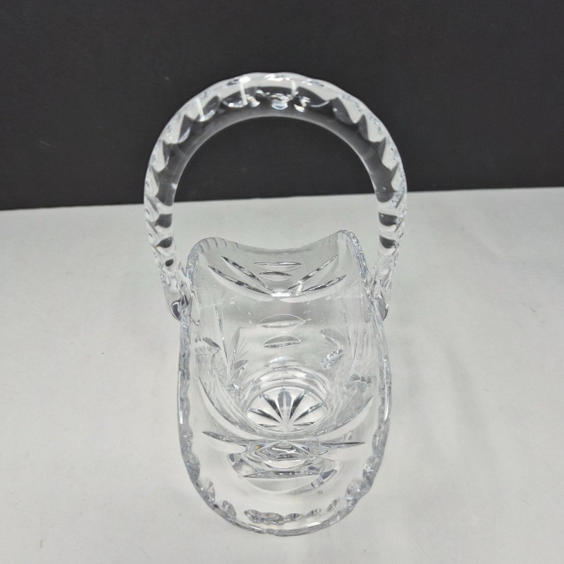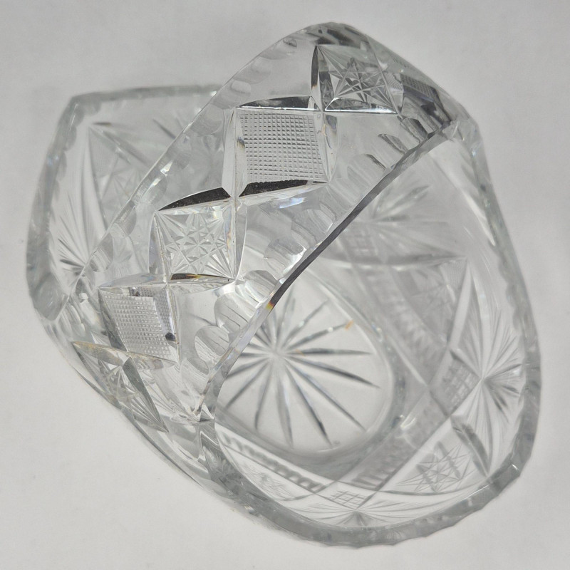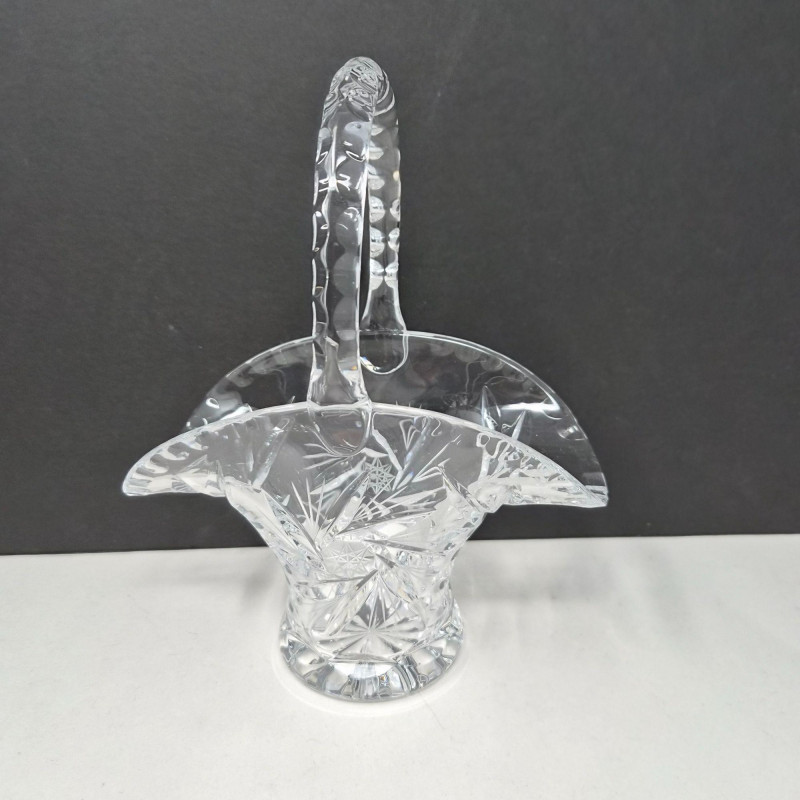 Set of five decorative crystal and cut glass baskets, each offering unique charm and craftsmanship: These baskets shimmer with light-catching facets and elegant silhouettes, ideal for display, gifting, or adding a touch of vintage sparkle to any space. A lovely mix for collectors of fine glassware or those curating a refined tabletop or curio cabinet.