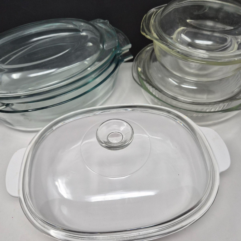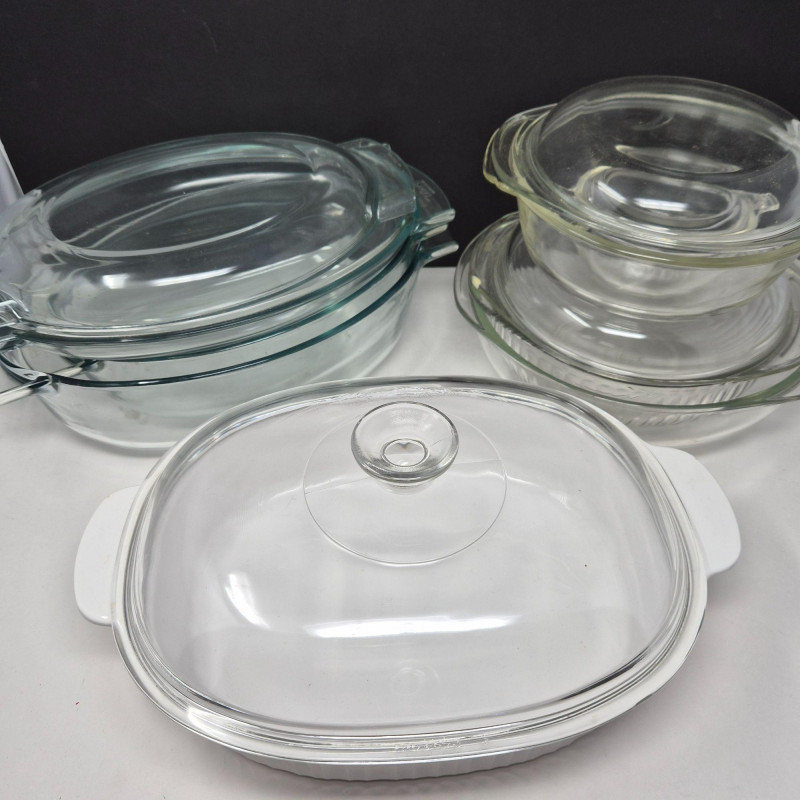 Get ready for the holidays with this assorted mix of vintage glass bakeware from trusted names like Pyrex, Fire King, and Corning. This lot includes: