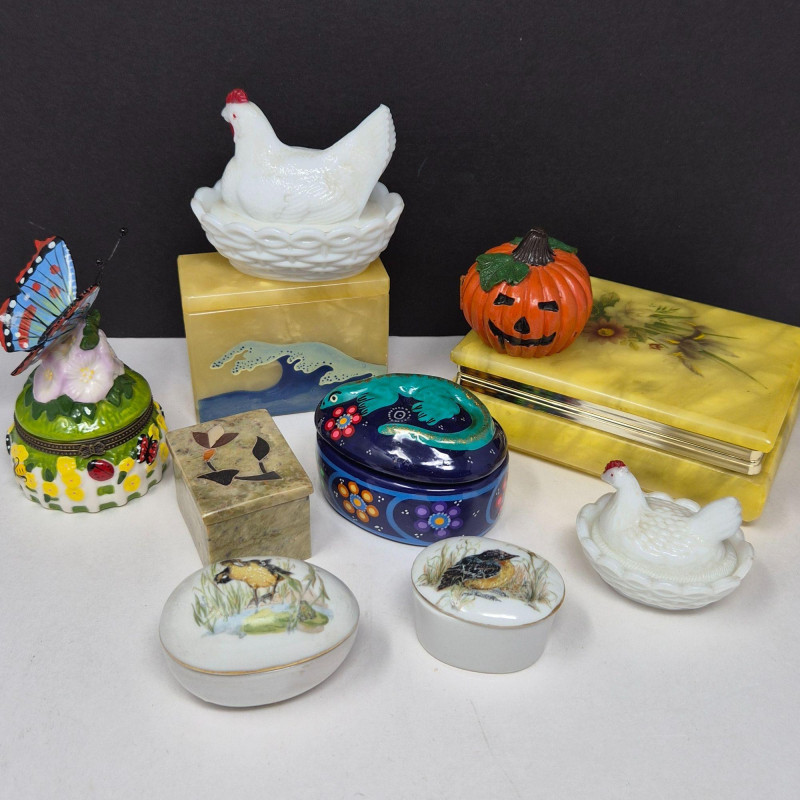 Lot # 175 - Decorative Trinket Box Assortment – Stone, Porcelain, Folk Art & More