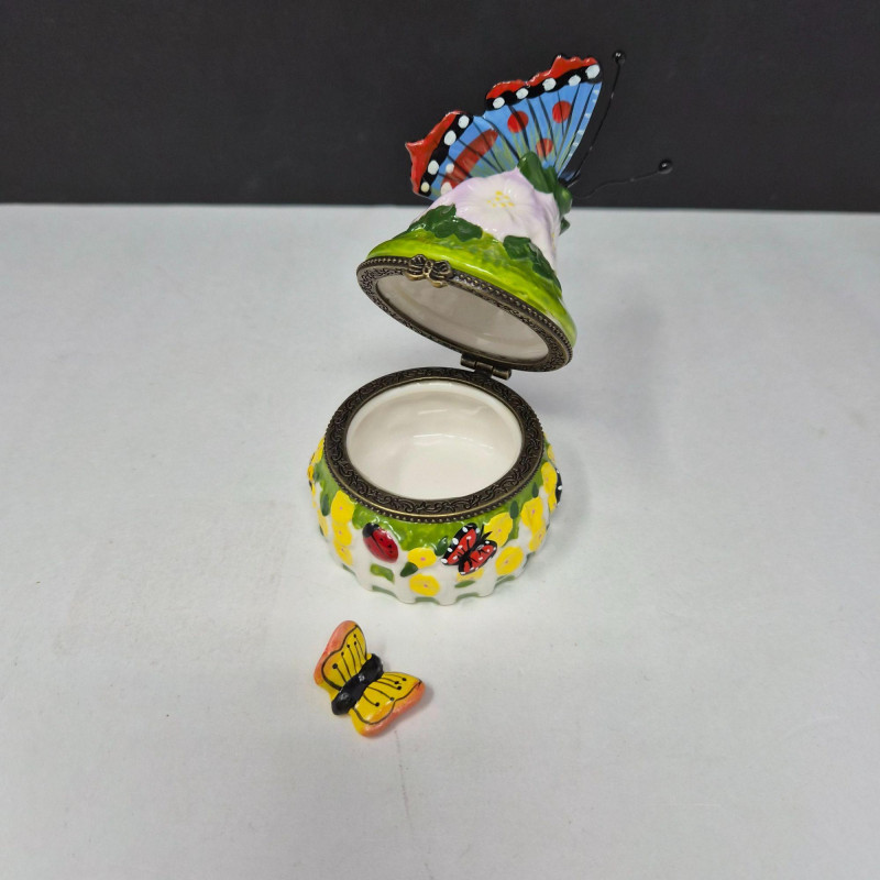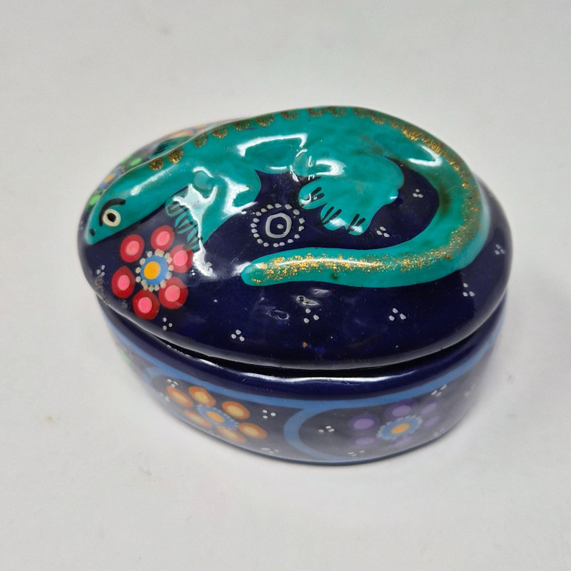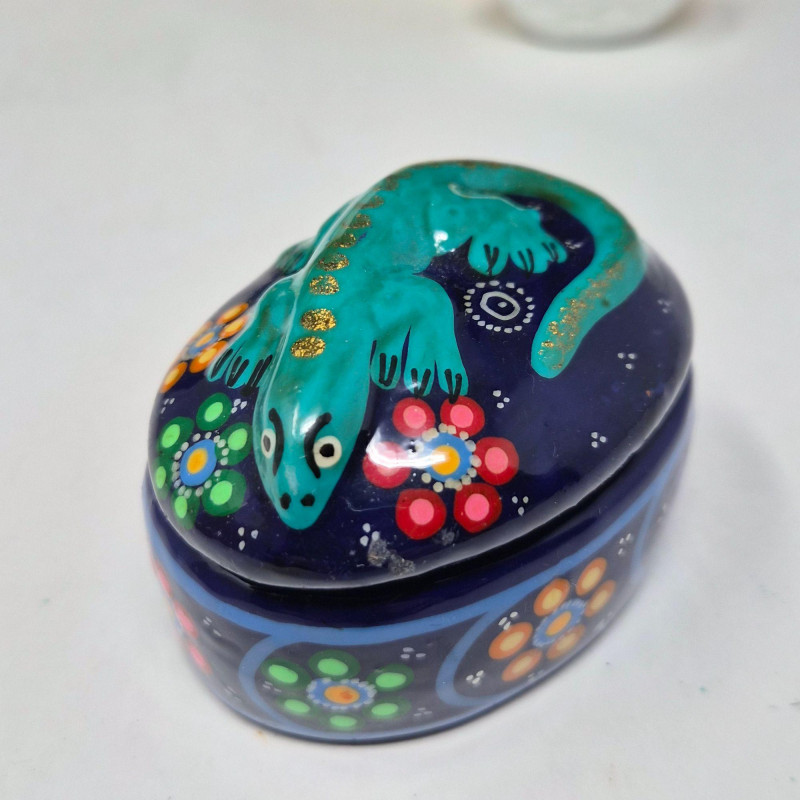 A delightful mix of decorative trinket boxes, each with its own story, style, and surprise: This lot offers a playful blend of materials and moods—from elegant stonework to festive folk art. Ideal for collectors, stylists, or anyone who loves a touch of whimsy and craftsmanship.