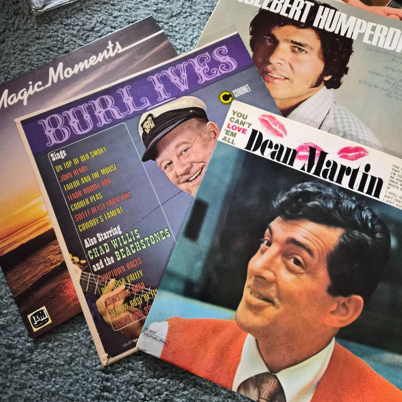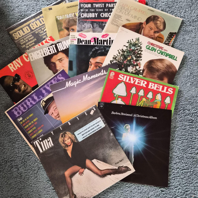 A lively collection of vintage vinyl LPs featuring a mix of rock ’n’ roll legends, country icons, and classic pop favorites. Highlights include: Perfect for collectors, DJs, or anyone curating a sentimental soundtrack. Expect a blend of well-loved covers, playable vinyl, and musical variety.