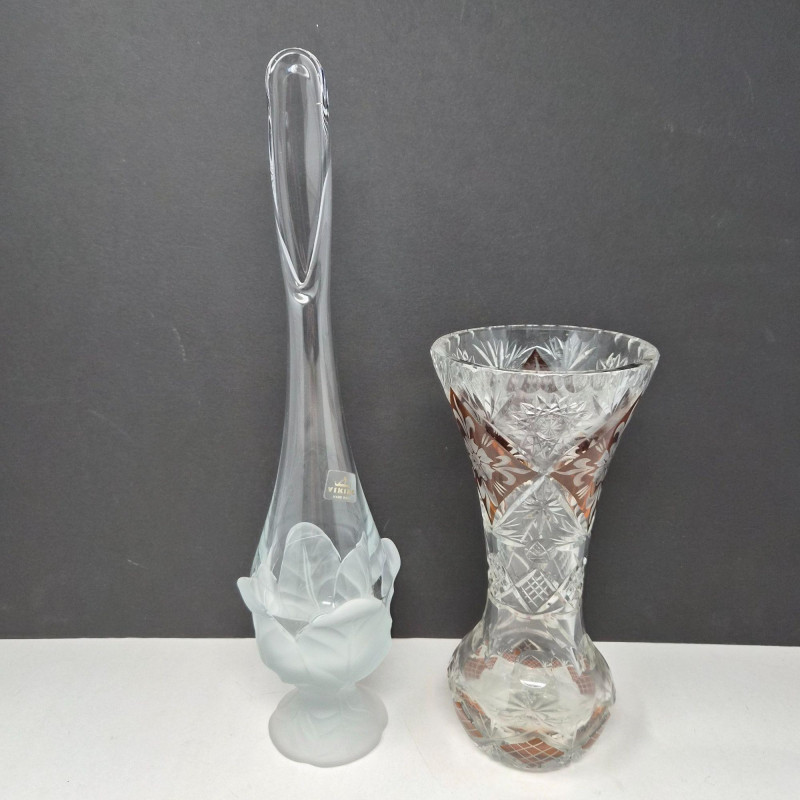 Lot # 179 - Viking Swung Glass and Bohemian Crystal Vase Duo