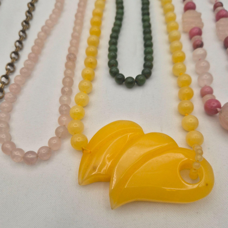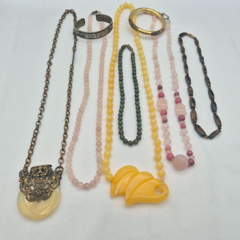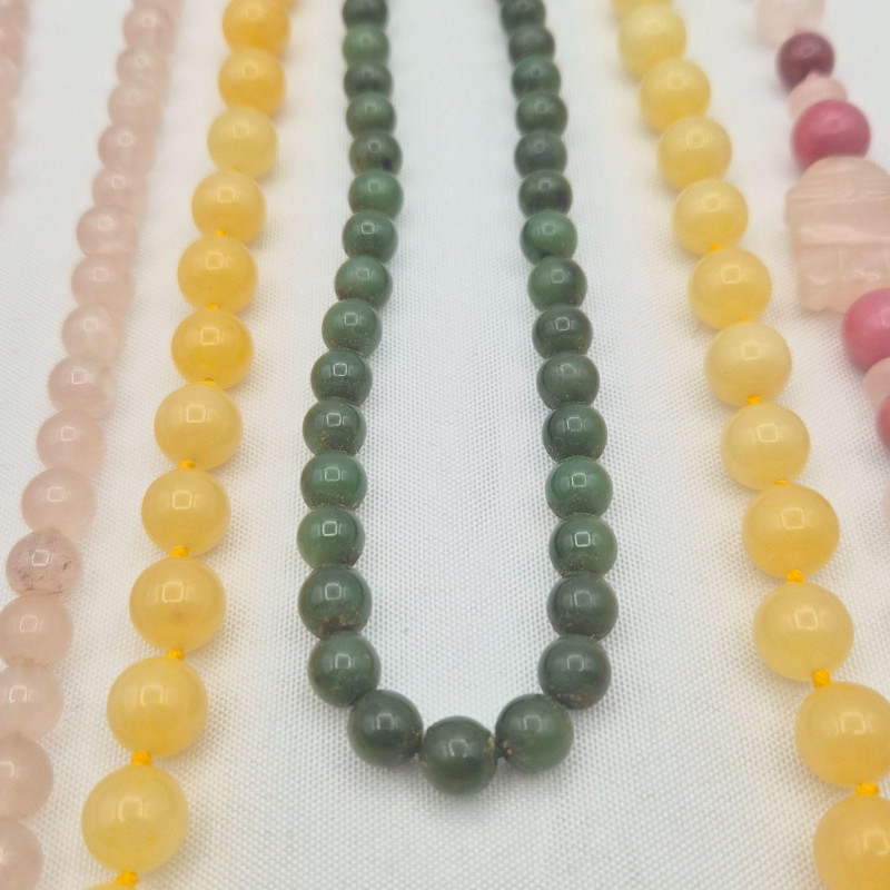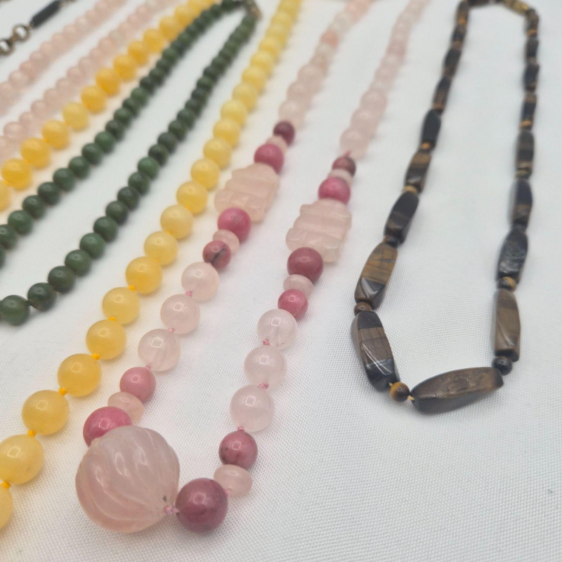 A serene and stylish assortment of polished stone bead jewelry, offering a range of natural textures, tones, and finishes. This lot includes: