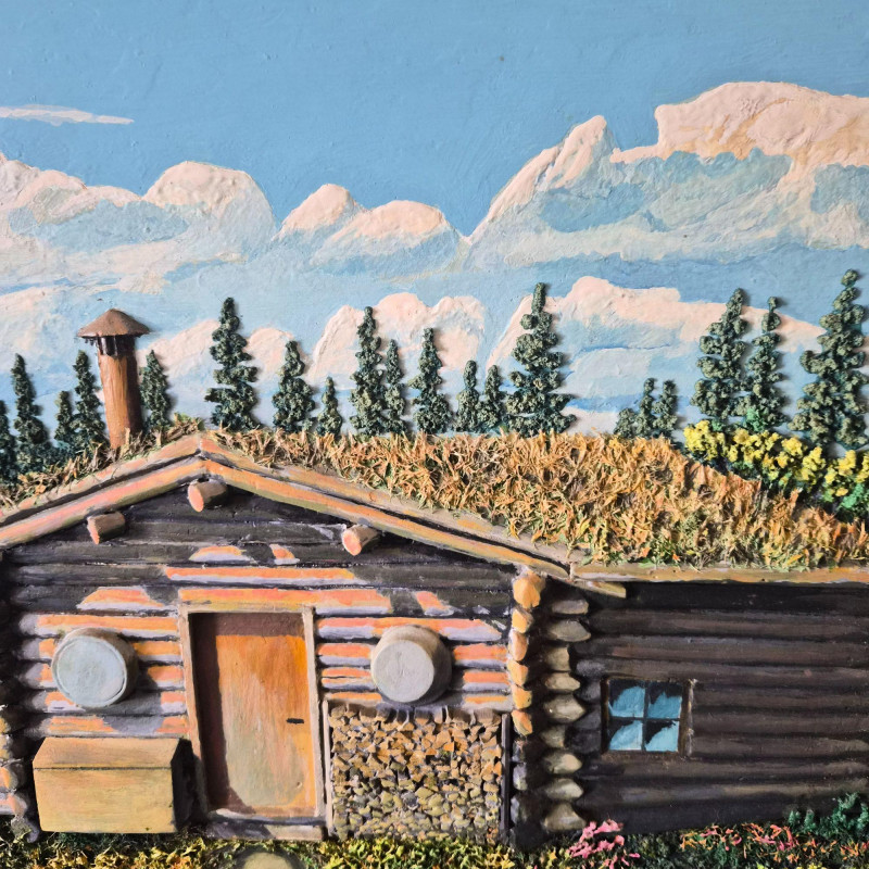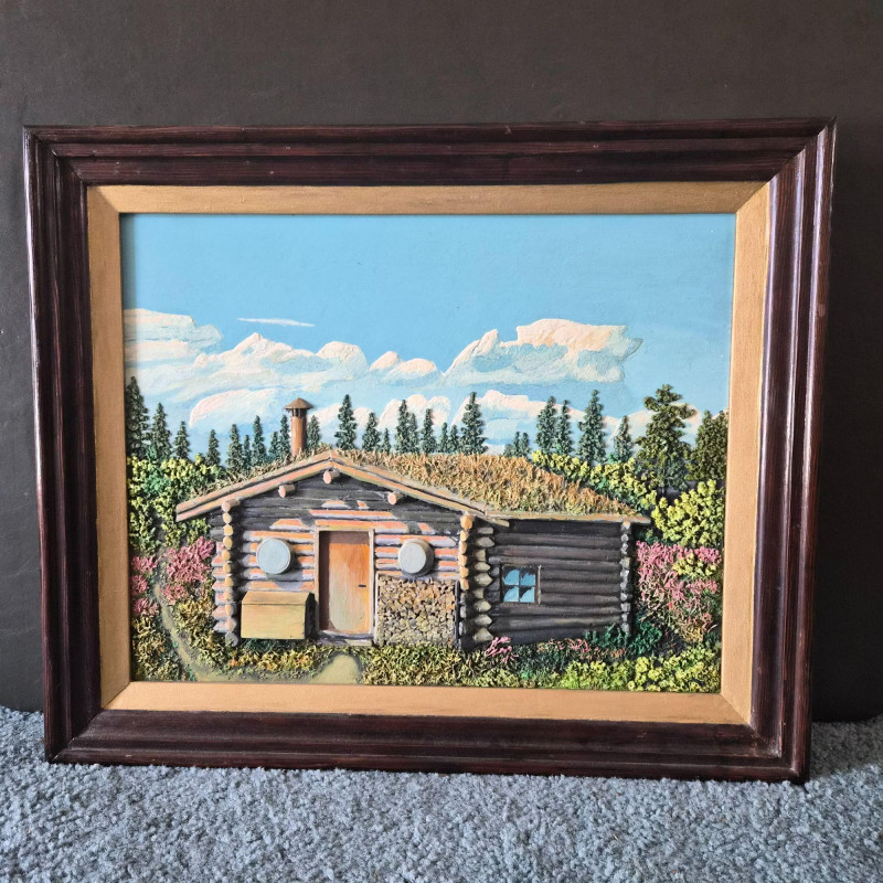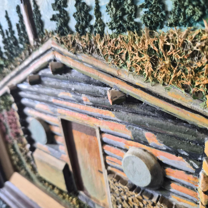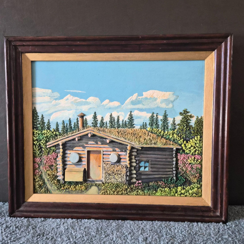 Lot # 189 - Rustic Cabin 3-D Relief Oil Painting on Board