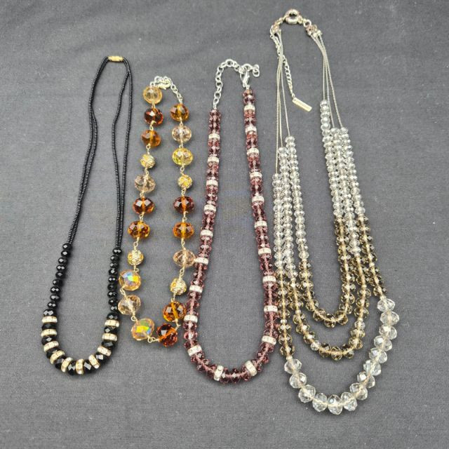 A radiant assortment of four crystal necklaces, offering versatile colors and designer flair: