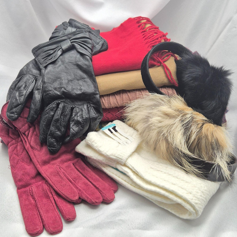 Lot # 129 - Bundle of Winter Accessories - Scarves, gloves, Earmuffs, Boot Socks